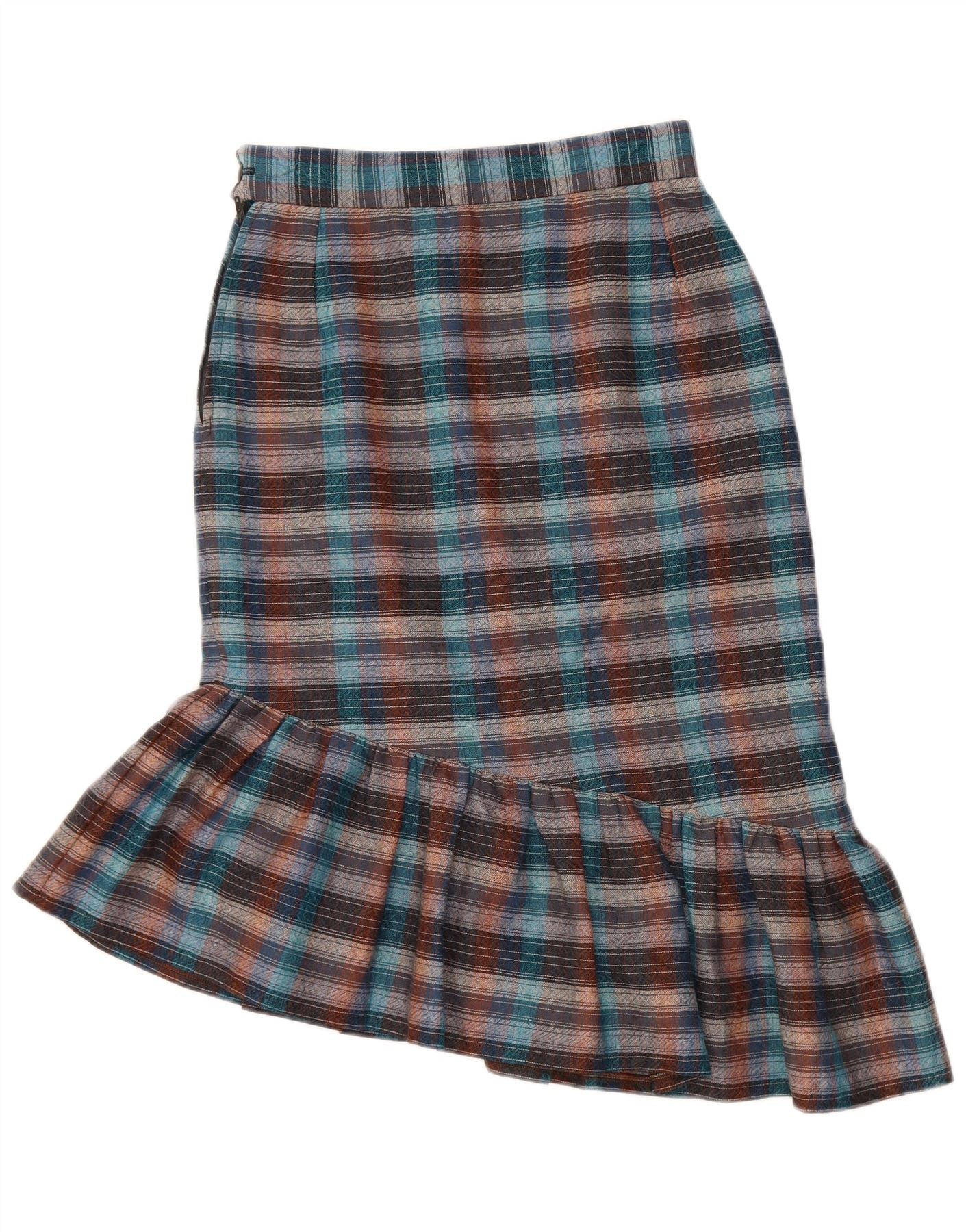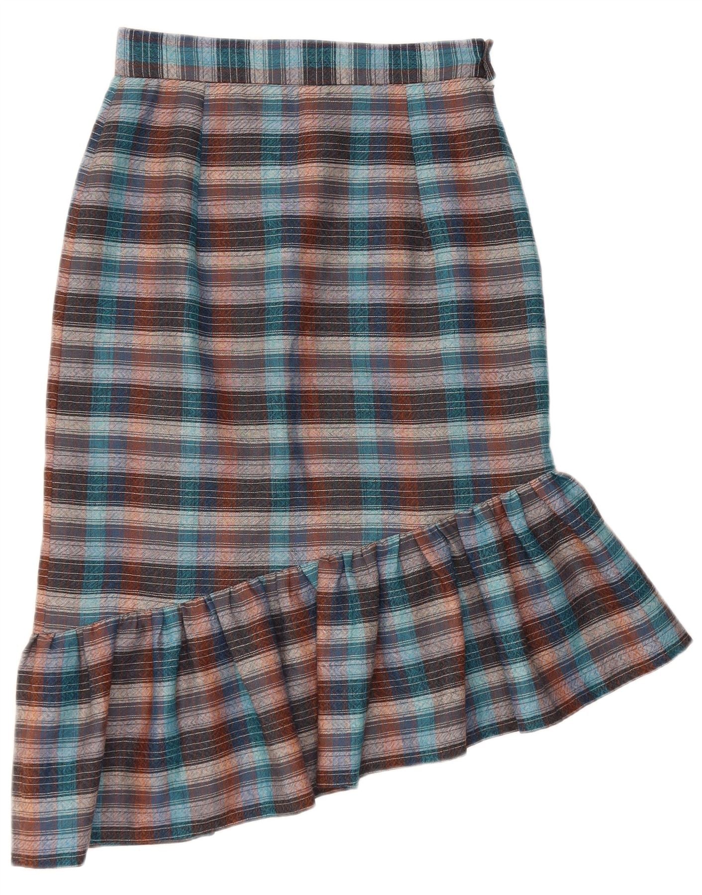VINTAGE Damen Asymmetrischer Trompetenrock W26 Kleiner mehrfarbiger Karo
