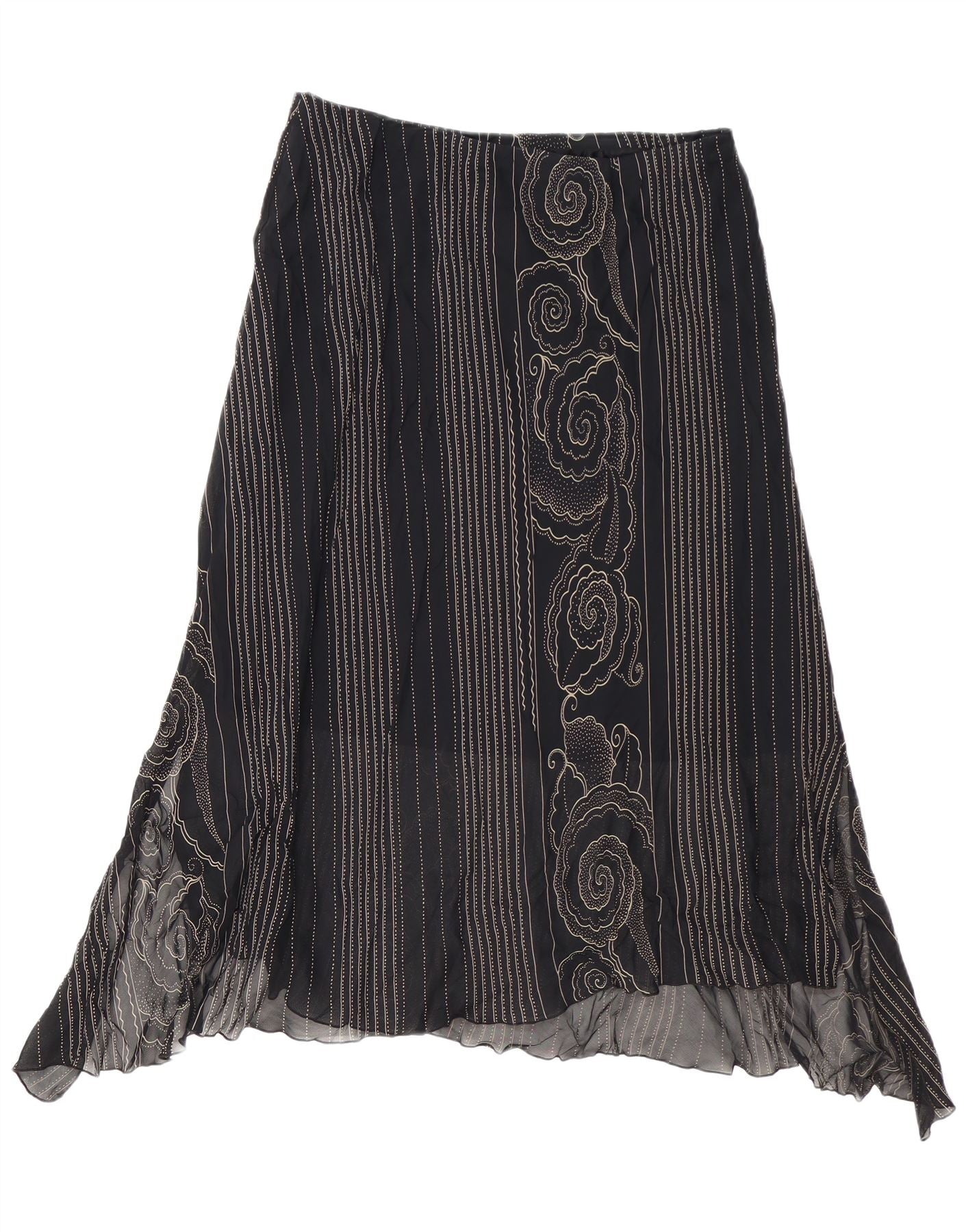 VINTAGE Damen Asymmetrischer Rock W34 Großes schwarzes Paisleymuster