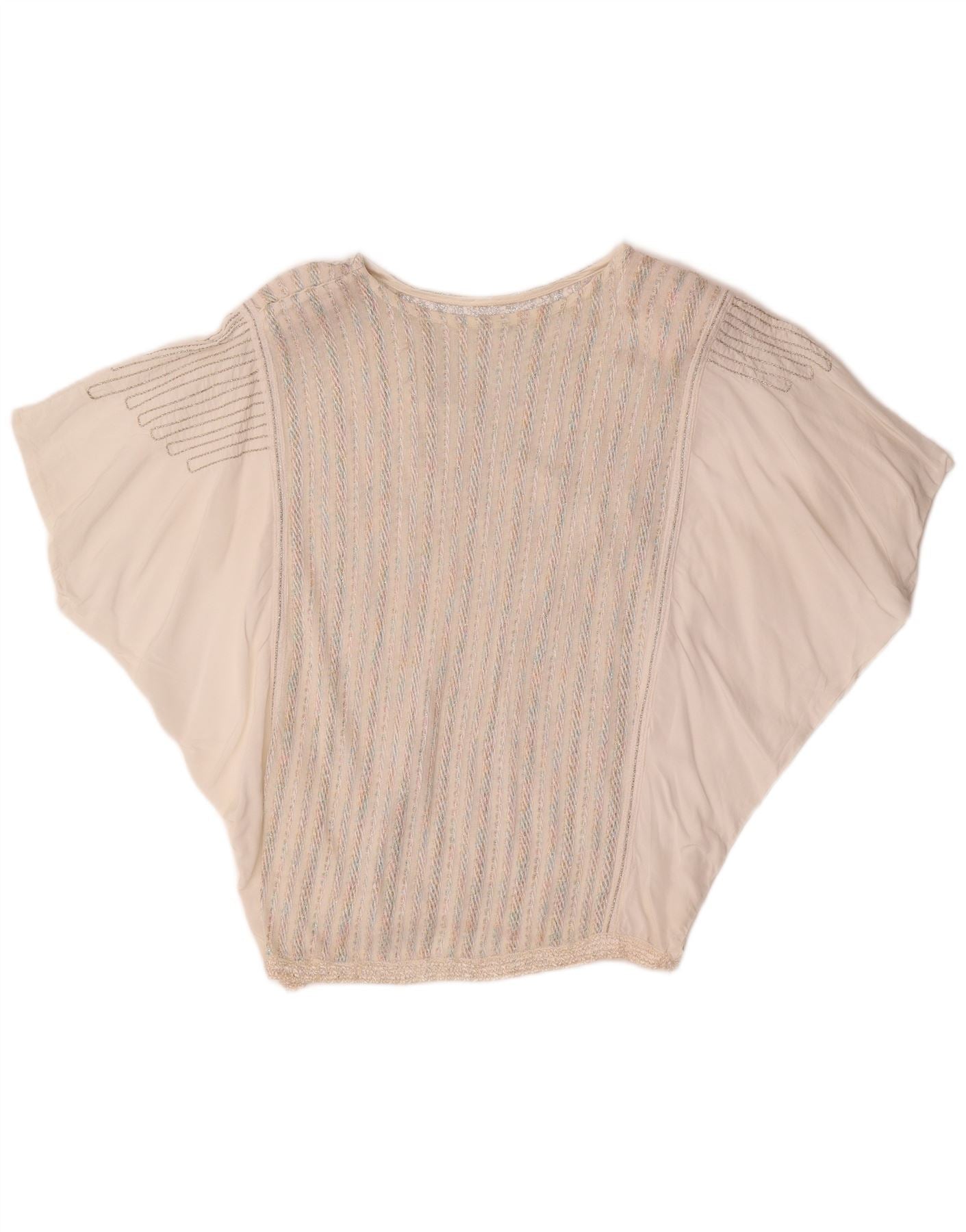VINTAGE Damen Fledermausbluse Top UK 12 Mittelweiß gestreift
