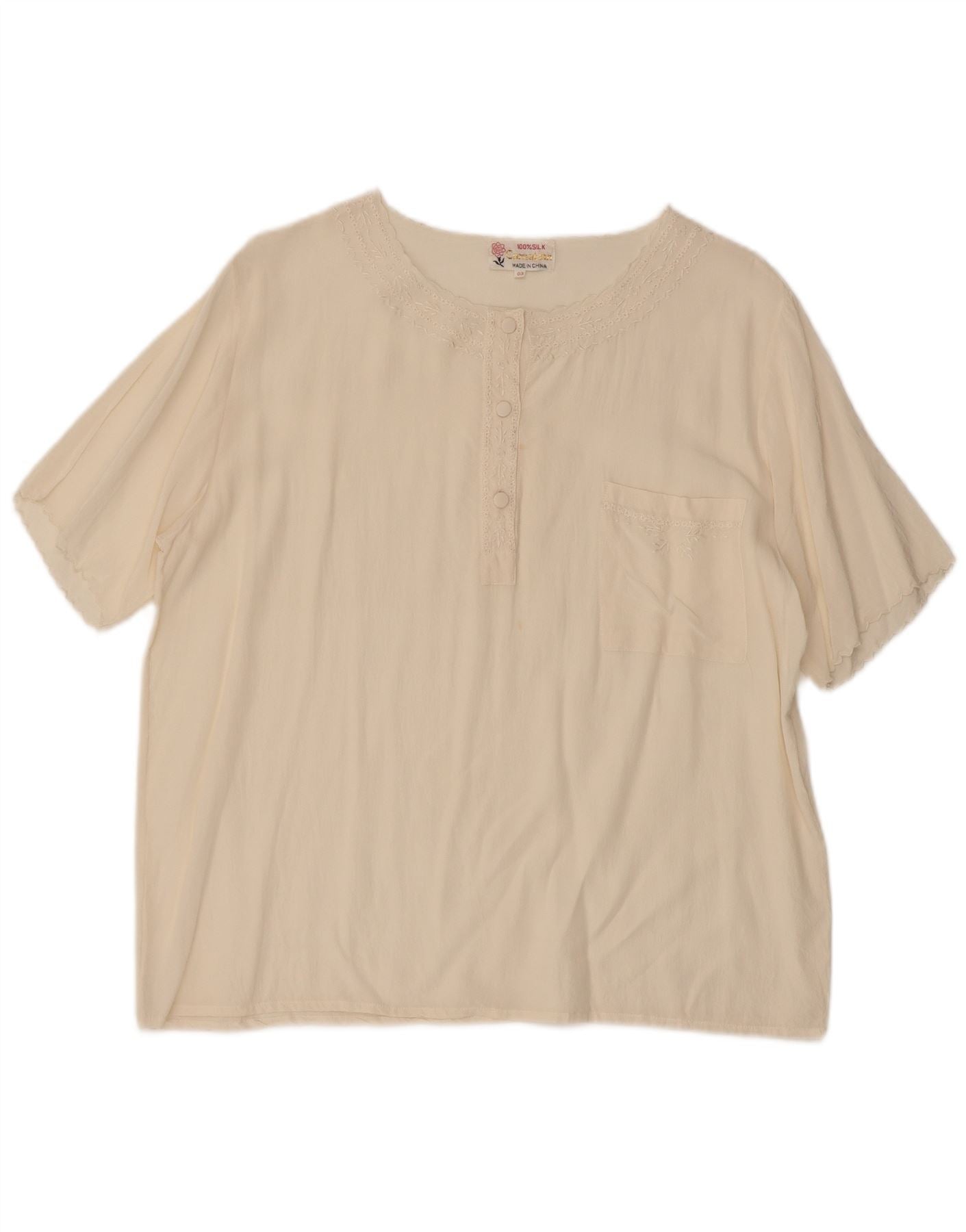 VINTAGE Damen Bluse Top UK 16 Große Off White Seide