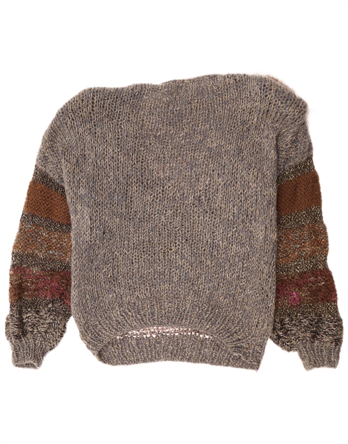VINTAGE Damen-Pullover mit U-Boot-Ausschnitt, EU 40/42, Mittelgrau, Farbblock