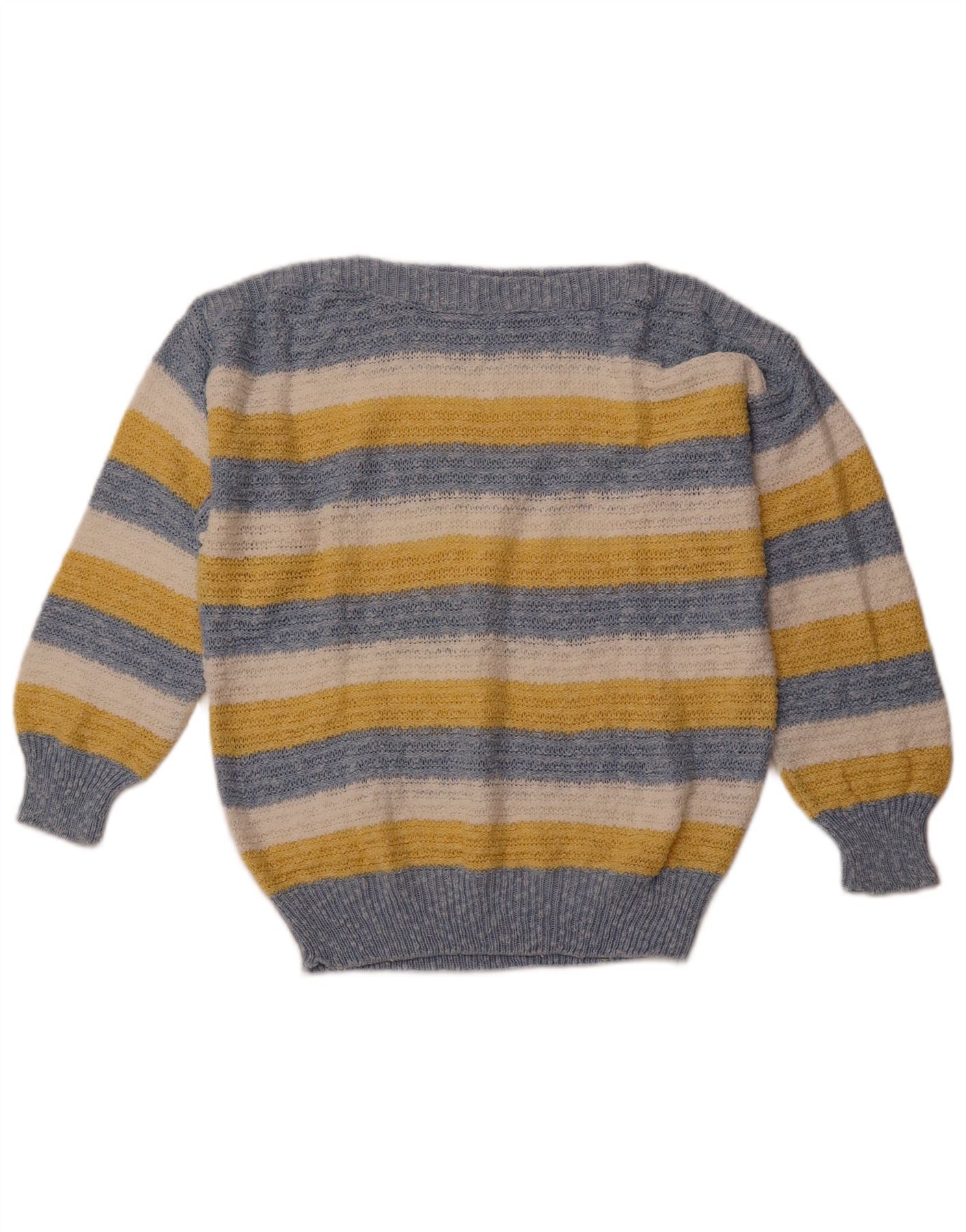 VINTAGE Damen Pullover mit U-Boot-Ausschnitt IT 42 Mittelblau gestreifte Baumwolle