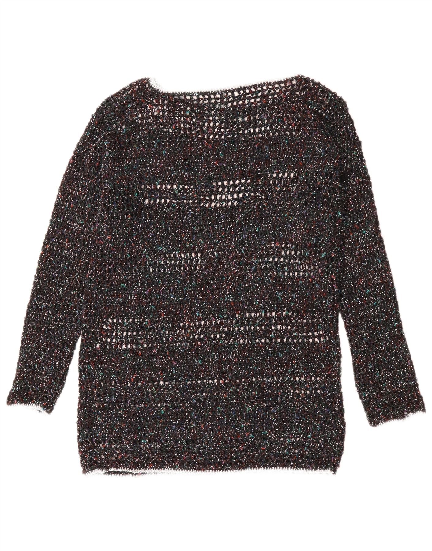 VINTAGE Damen-Pullover mit U-Boot-Ausschnitt, UK 12, mittelmehrfarbig gefleckt