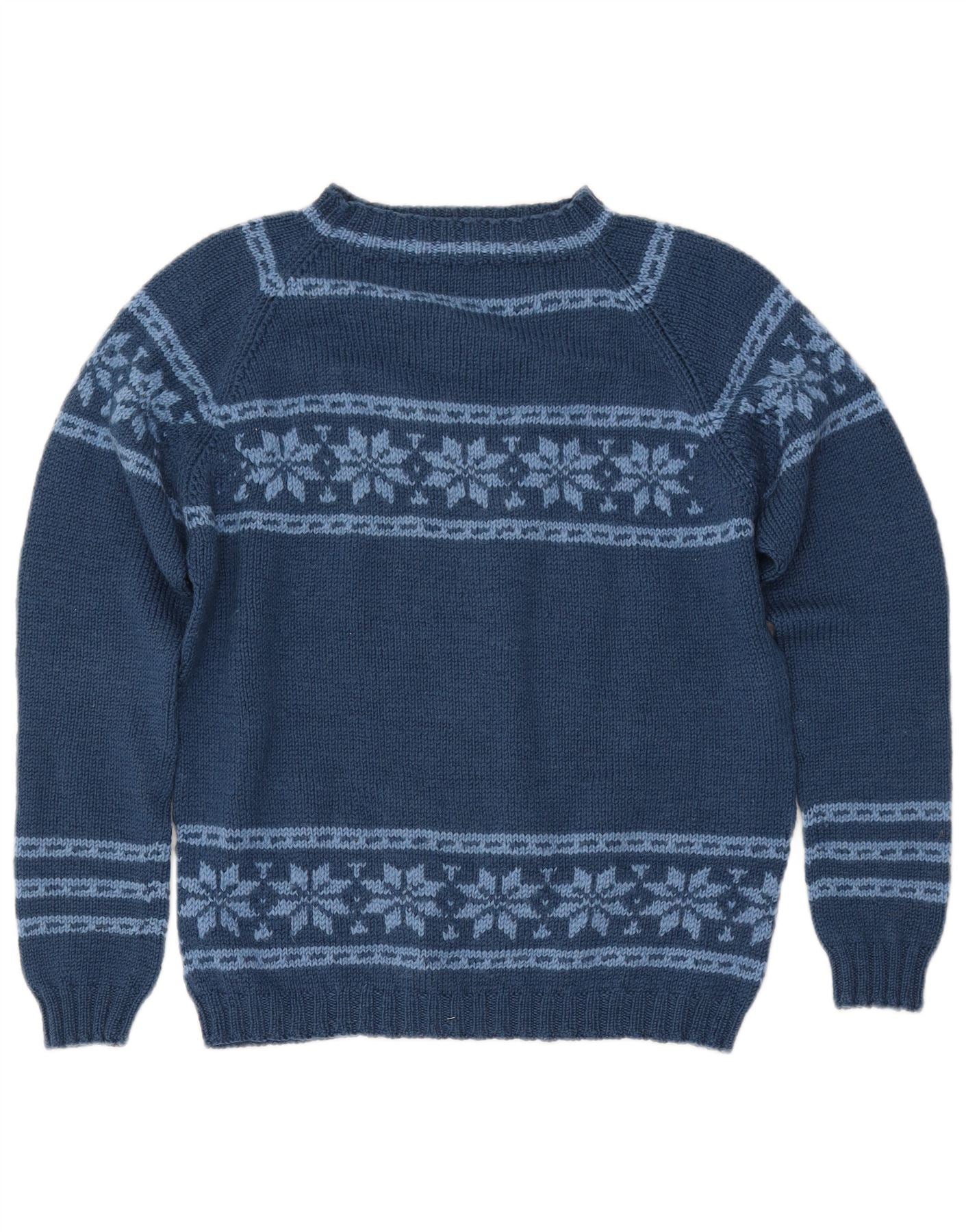VINTAGE Damen-Pullover mit U-Boot-Ausschnitt, UK 12, mittleres Marineblau, Fair Isle