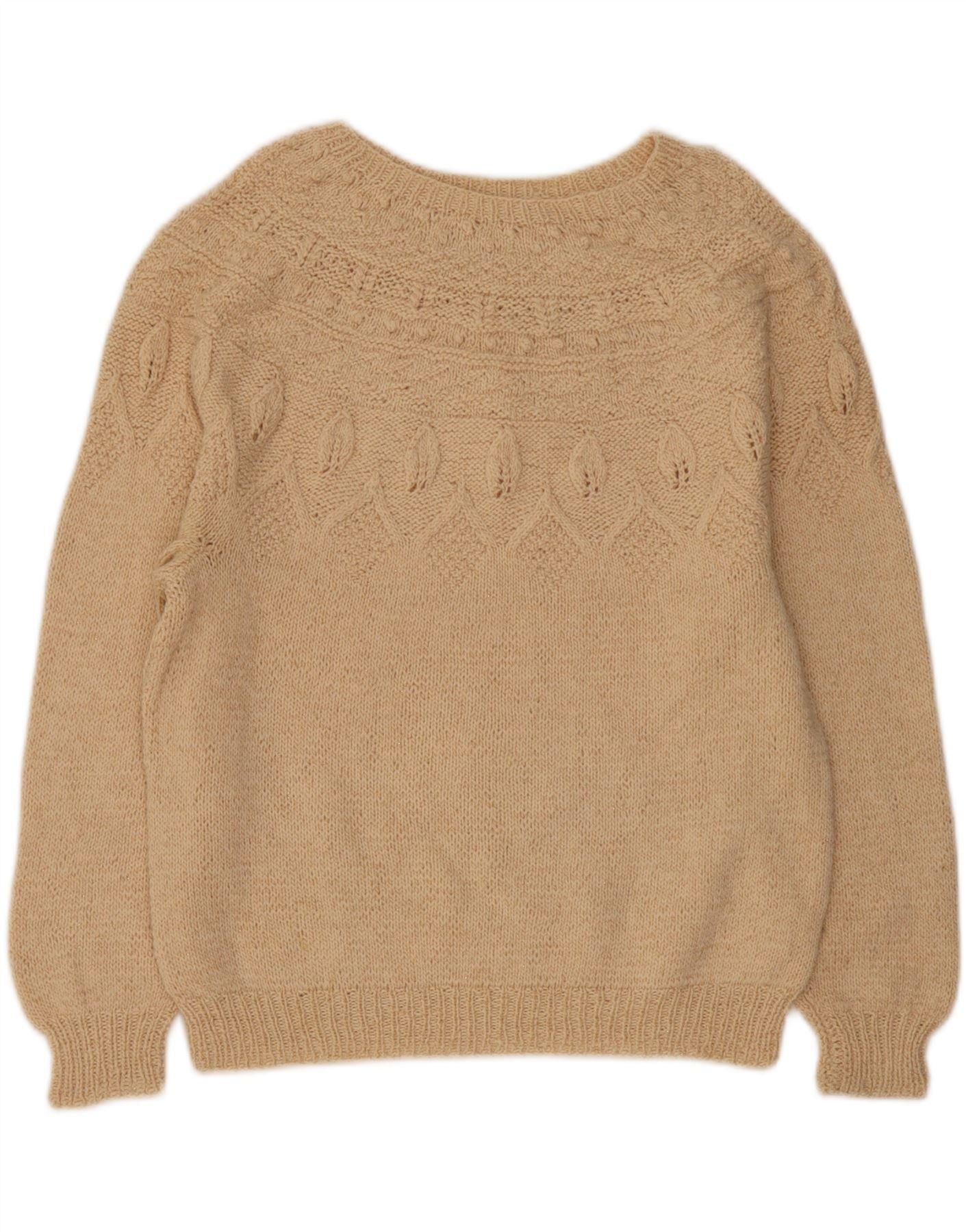 VINTAGE Damen-Pullover mit U-Boot-Ausschnitt, UK 14, Größe L, Beige