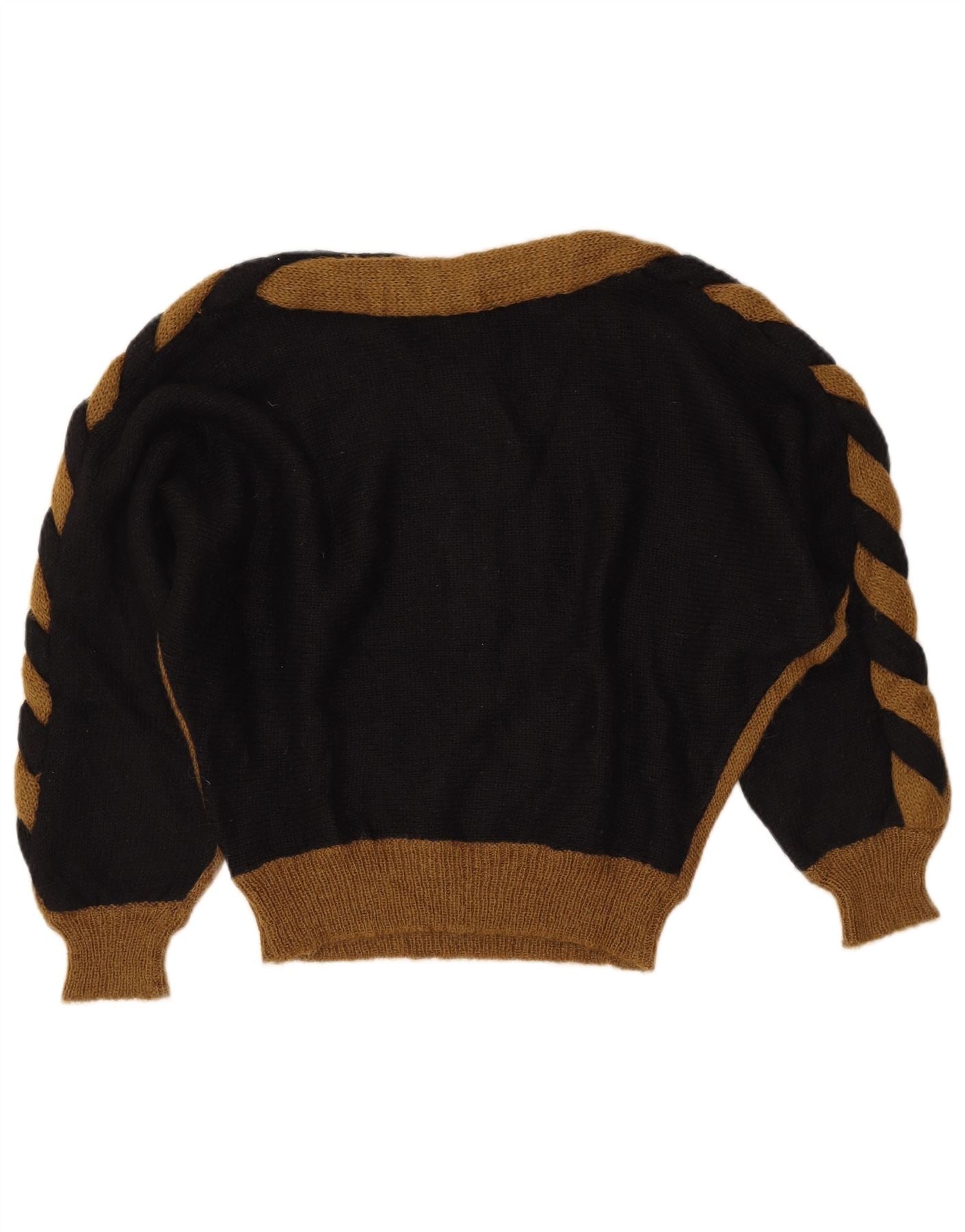 VINTAGE Damen-Pullover mit U-Boot-Ausschnitt, UK 14, Mittelschwarz, Farbblock