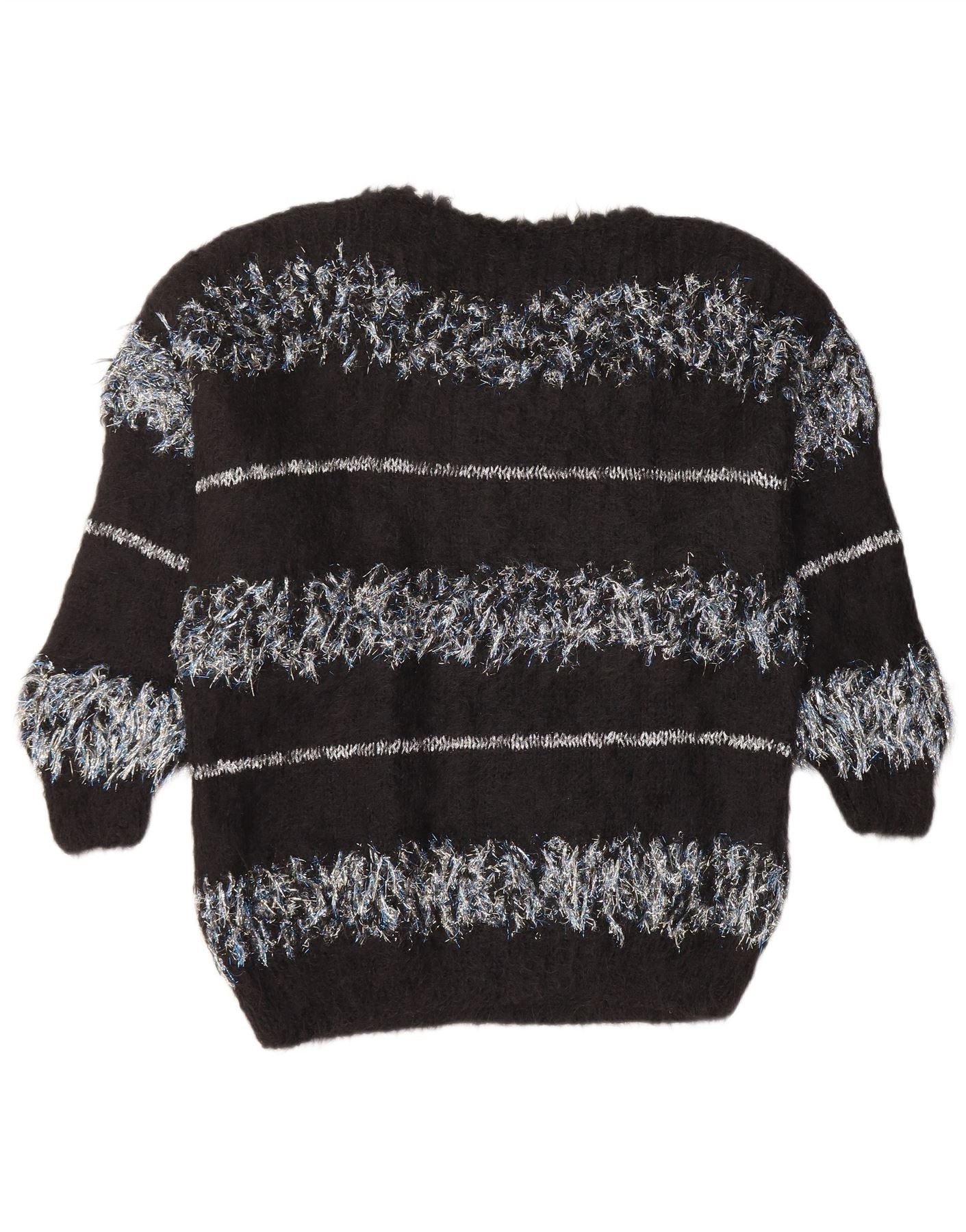 VINTAGE Damen Pullover mit U-Boot-Ausschnitt UK 18 XL Schwarz gestreift
