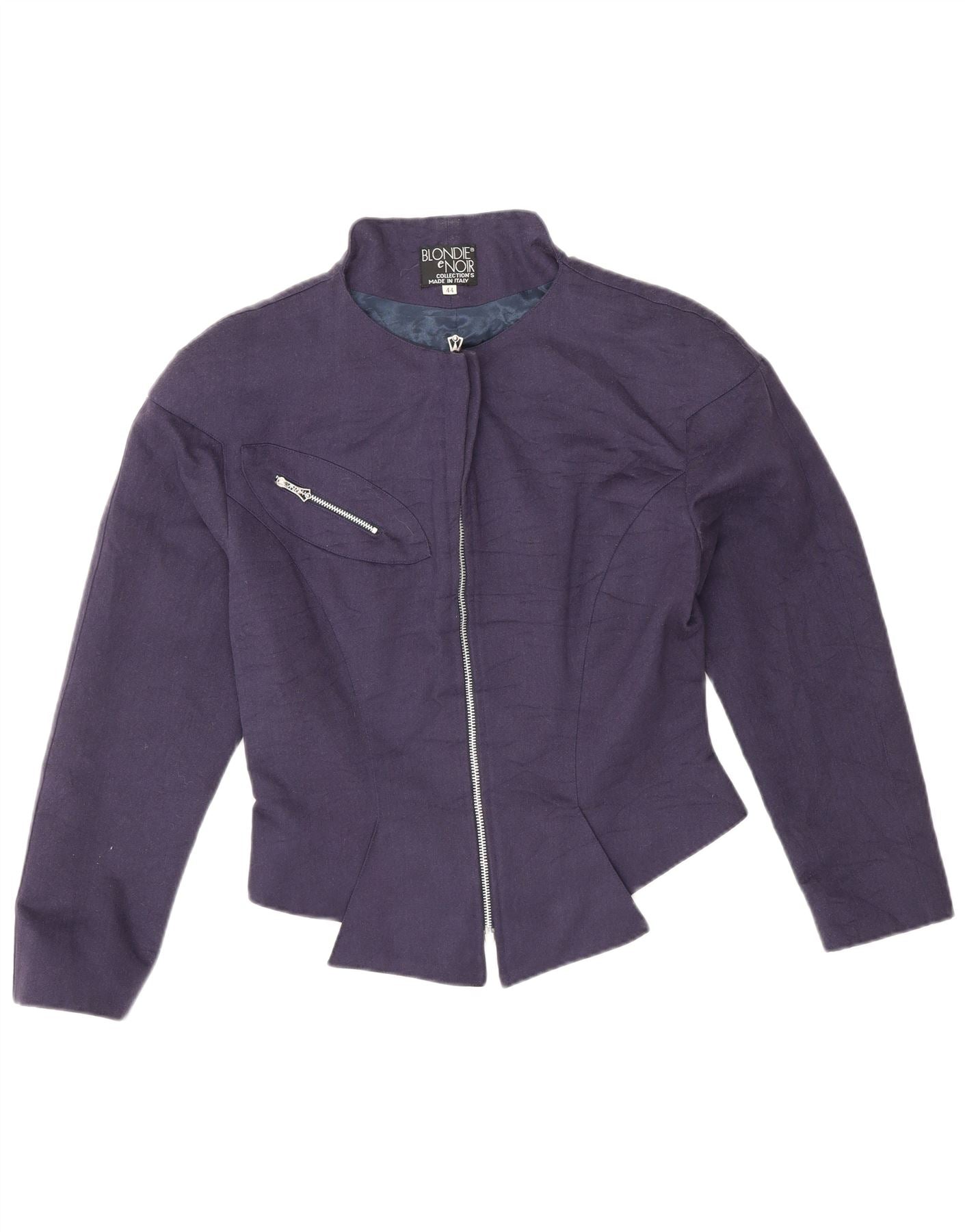 VINTAGE Damen Bomberjacke IT 44 Medium Marineblau Acetat