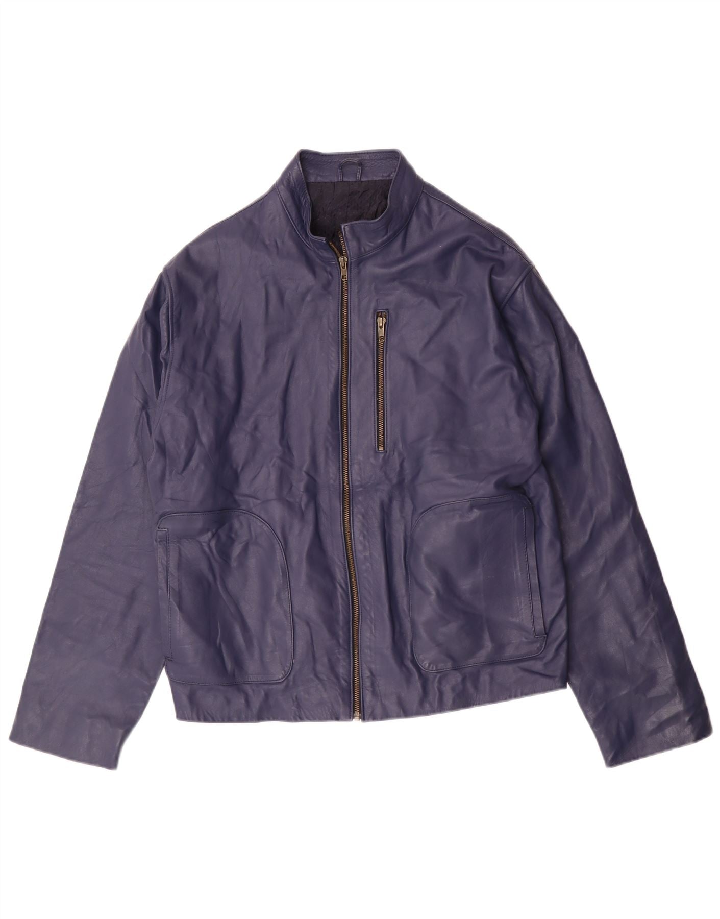 Vintage Damen Bomber Lederjacke UK 14 Medium Navy Blue
