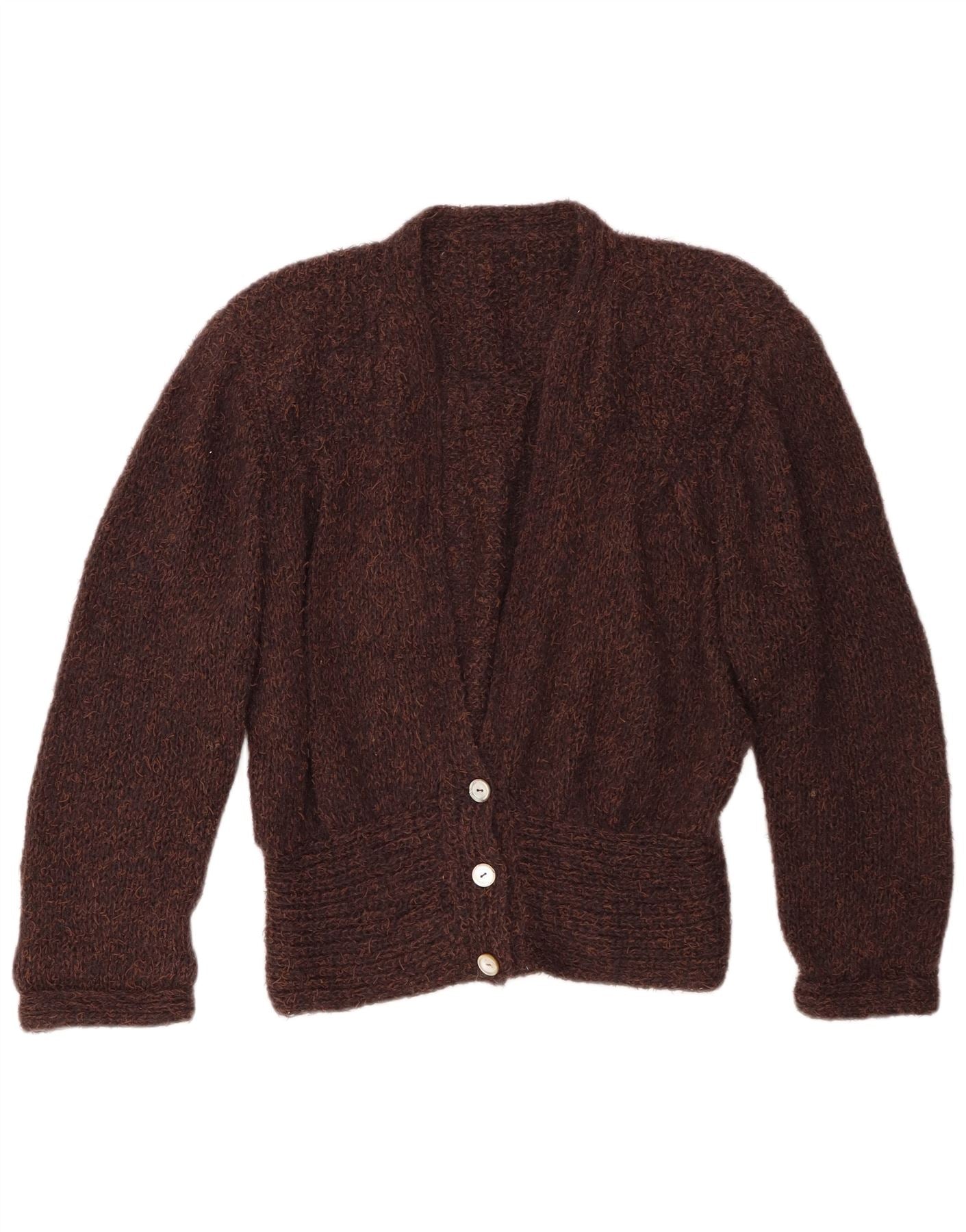 - KI-Beschreibung: Dieser Vintage-Cardigan für Damen ist aus einem satten braunen Strickstoff gefertigt und bietet eine gemütliche Textur. Es verfügt über einen klassischen V-Ausschnitt und lange Ärmel. Die reguläre Passform sorgt für angenehmen Tragekomfort. Ein Knopfverschluss mit kontrastierenden Knöpfen vorne sorgt für einen traditionellen Touch. Der gerippte Saum und die Bündchen sorgen für eine dezente Struktur. Dieses Stück im Retro-Stil eignet sich perfekt zum Schichten.