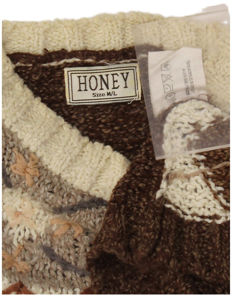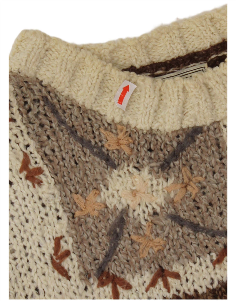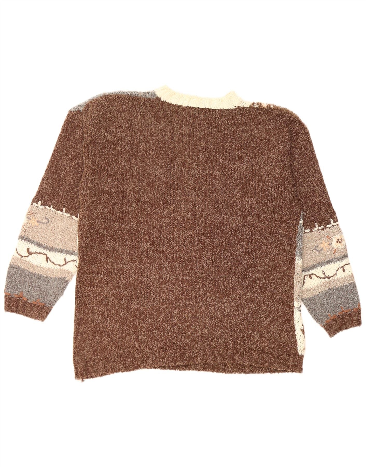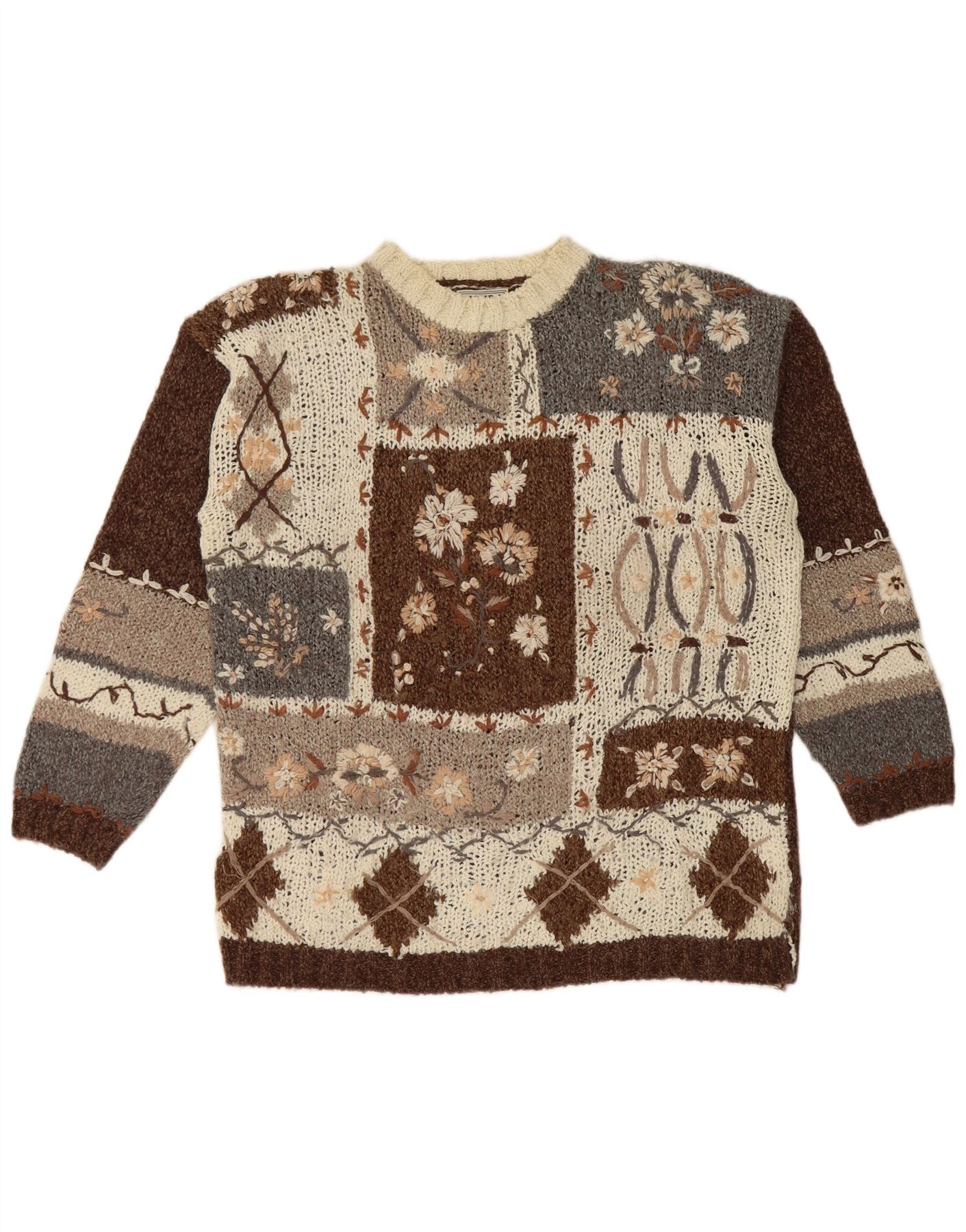 VINTAGE Damen Pullover mit Rundhalsausschnitt UK 14 Mittelbraun geblümt