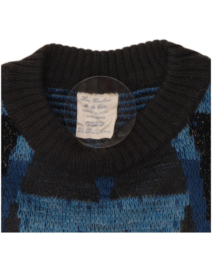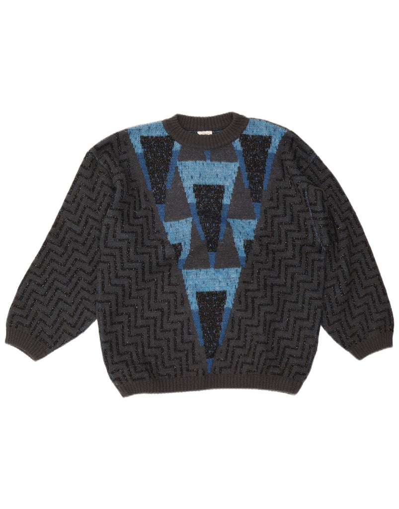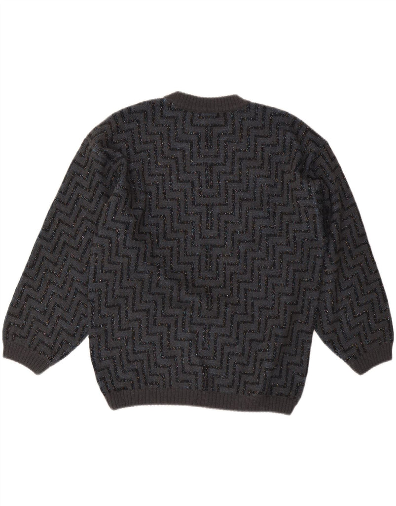 VINTAGE Damen-Pullover mit Rundhalsausschnitt, UK 16, große graue Chevron-Wolle