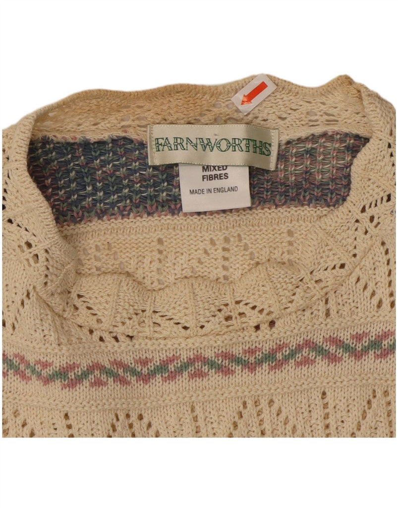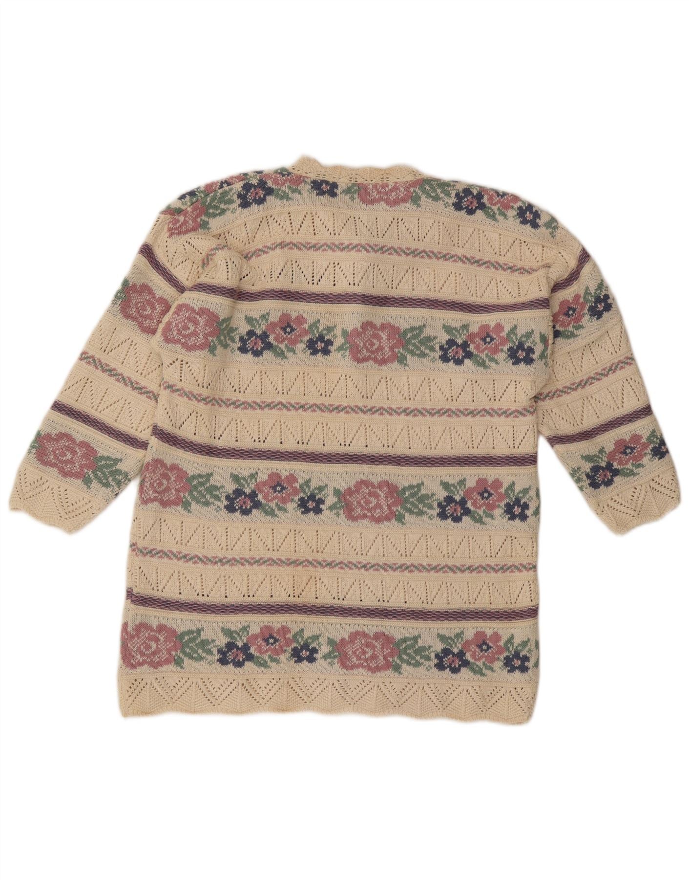 VINTAGE Womens Crew Neck Jumper Sweater UK 16 Large Off White Floral
