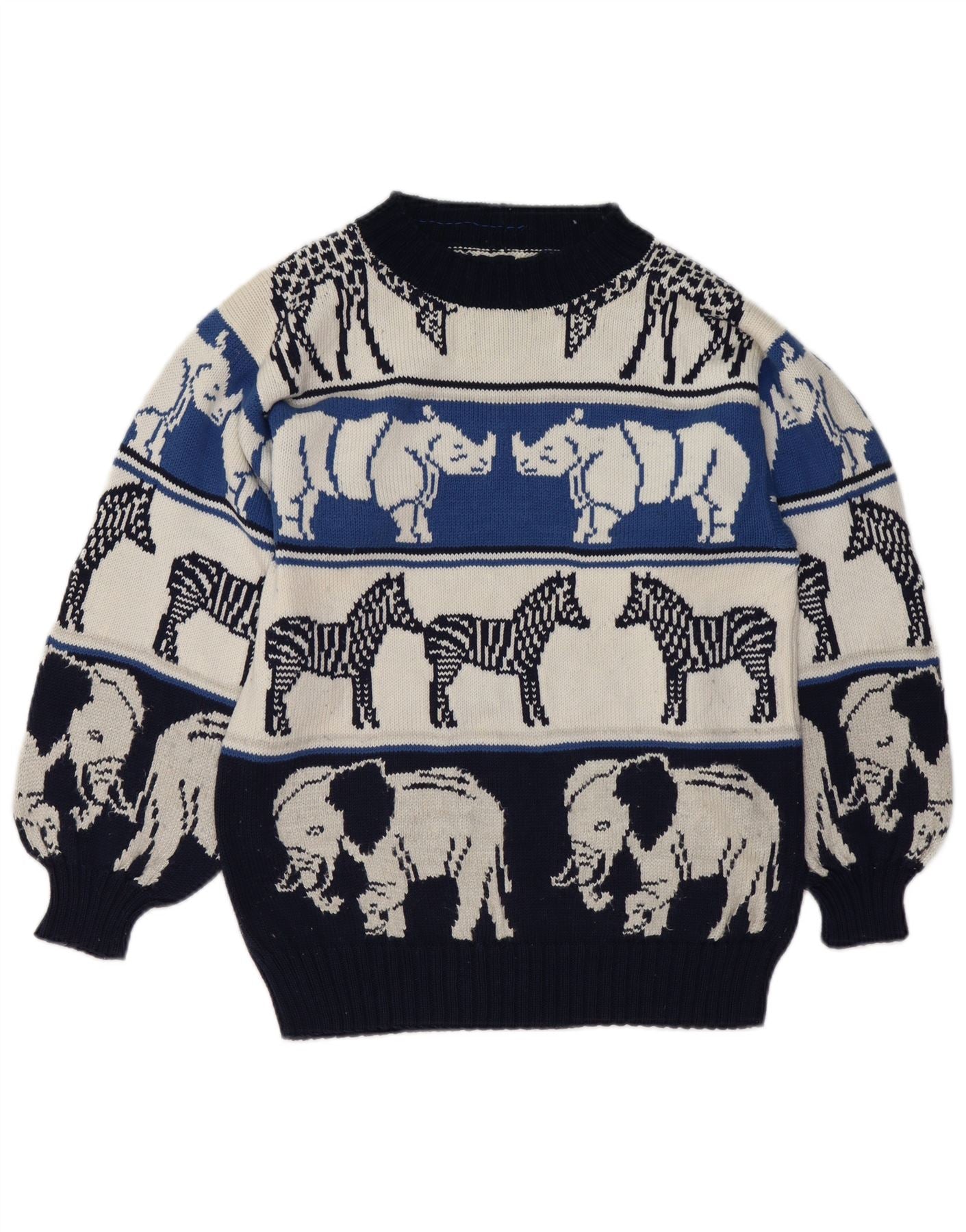 VINTAGE Damen Pullover mit Rundhalsausschnitt UK 18 XL Marineblauer Tierdruck