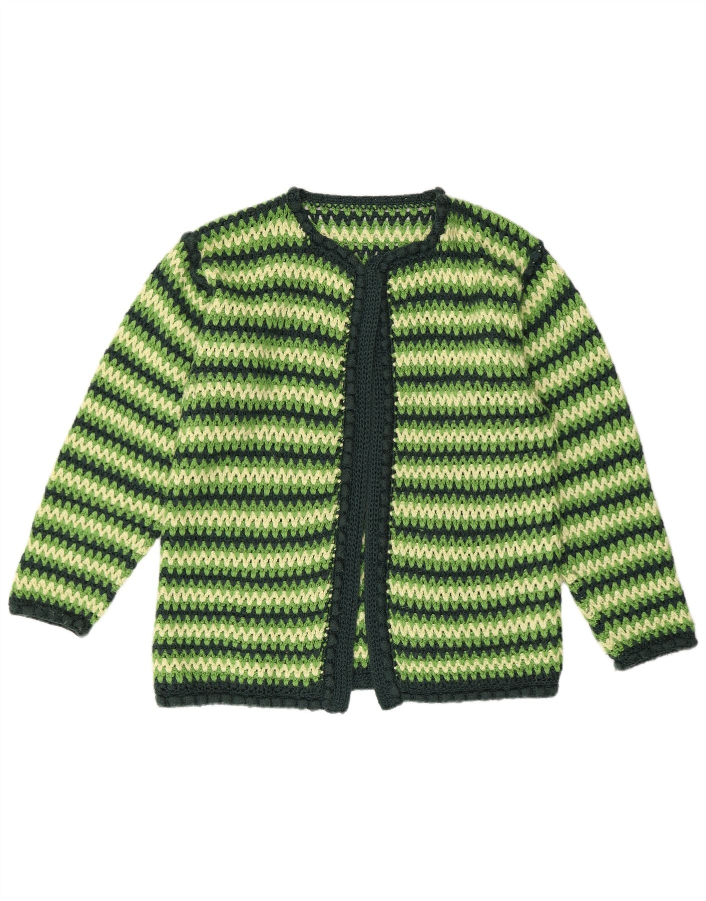 VINTAGE Damen Häkel-Cardigan-Pullover UK 16 Groß grün gestreift