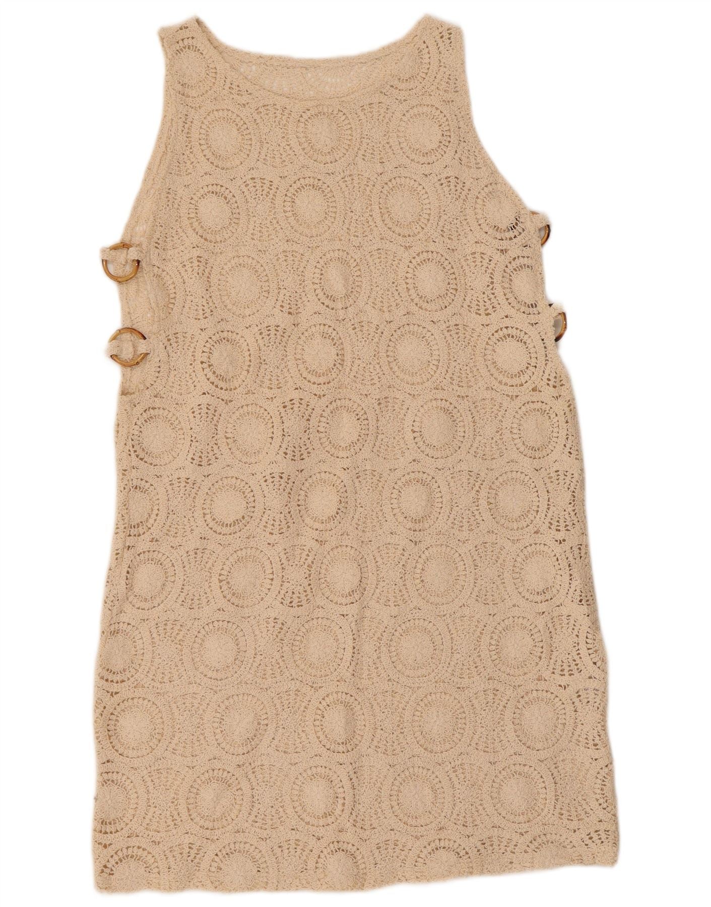 Home > Damen > Depop-Kleidung > VINTAGE Damen Gehäkeltes ärmelloses Etuikleid UK 10 Small Beige Baumwolle