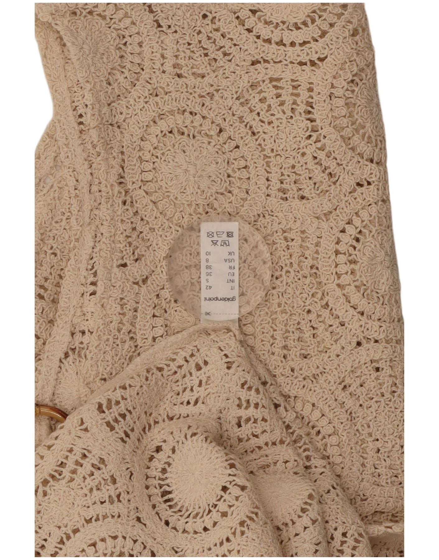 VINTAGE Damen Gehäkeltes ärmelloses Etuikleid UK 10 Small Beige Baumwolle