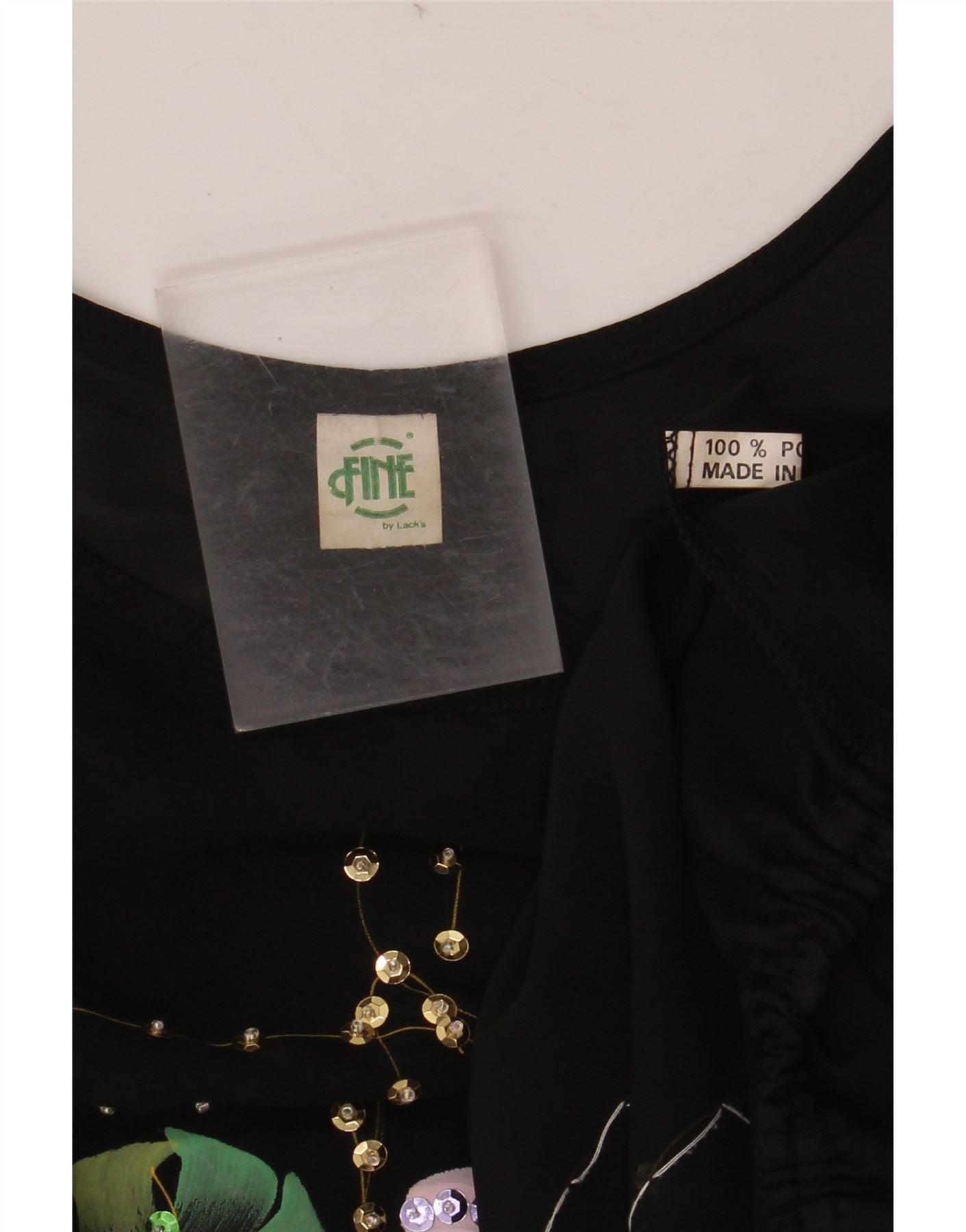 VINTAGE Damen Crop Batwing Bluse Top UK 18 XL Schwarz geblümtes Polyester