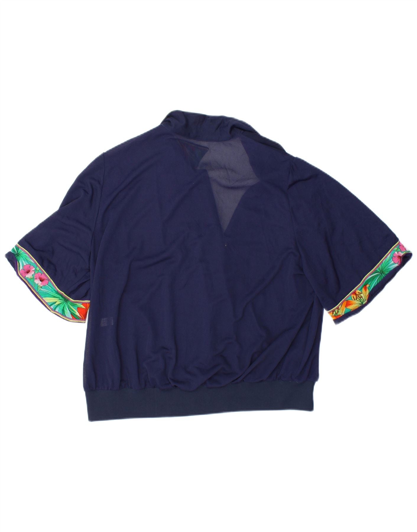 VINTAGE Damen Crop Bluse Top IT 48 XL Marineblau geblümt