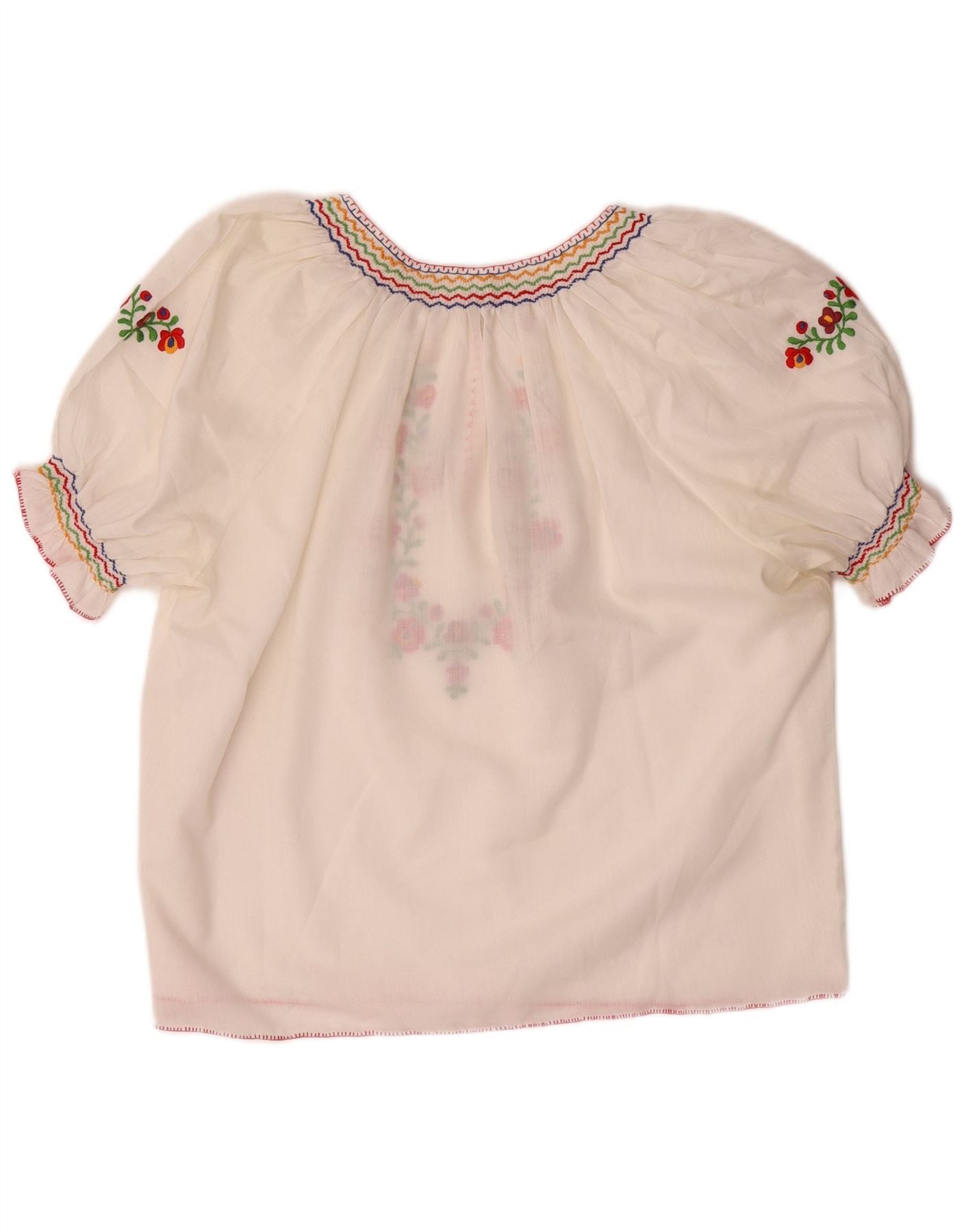VINTAGE Damen Crop Bluse Top UK 16 Großes weißes Blumenmuster aus Polyester