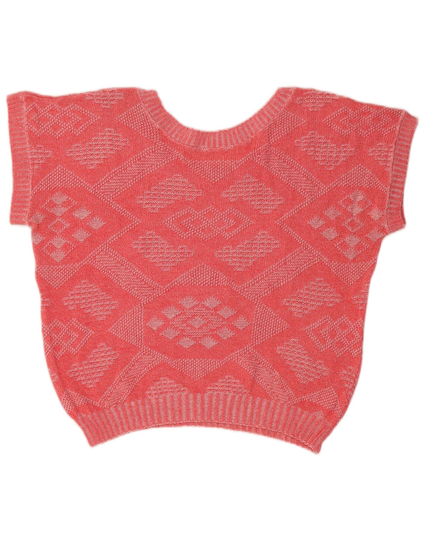 VINTAGE Damen Crop Pullover mit U-Boot-Ausschnitt, UK 14, Mittelrosa