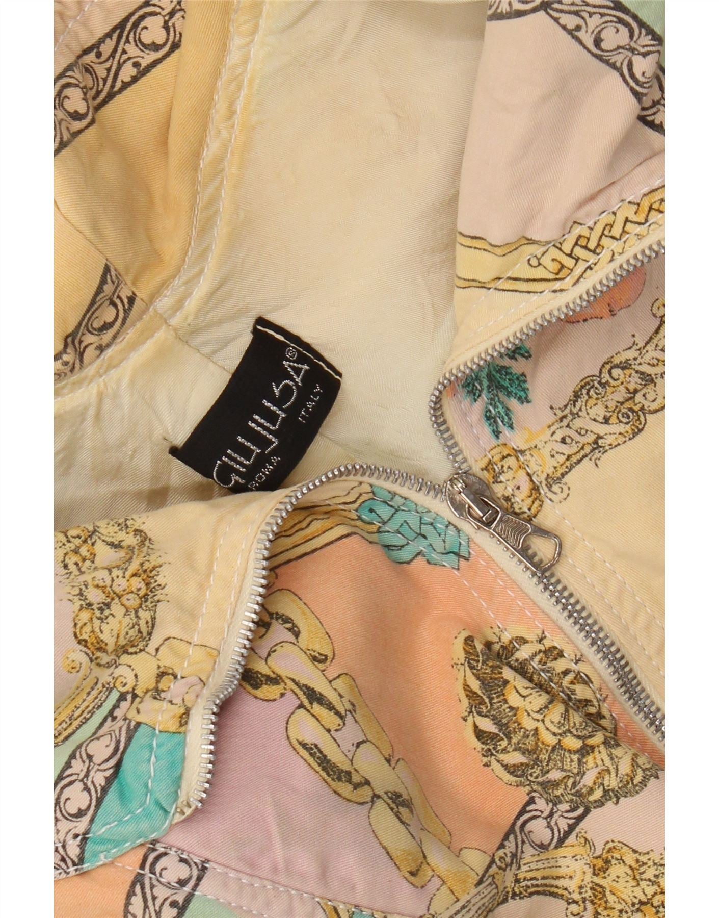 Vintage Damen Crop Bomberjacke UK 12 Medium Mehrfarbige Blumenbaumwolle