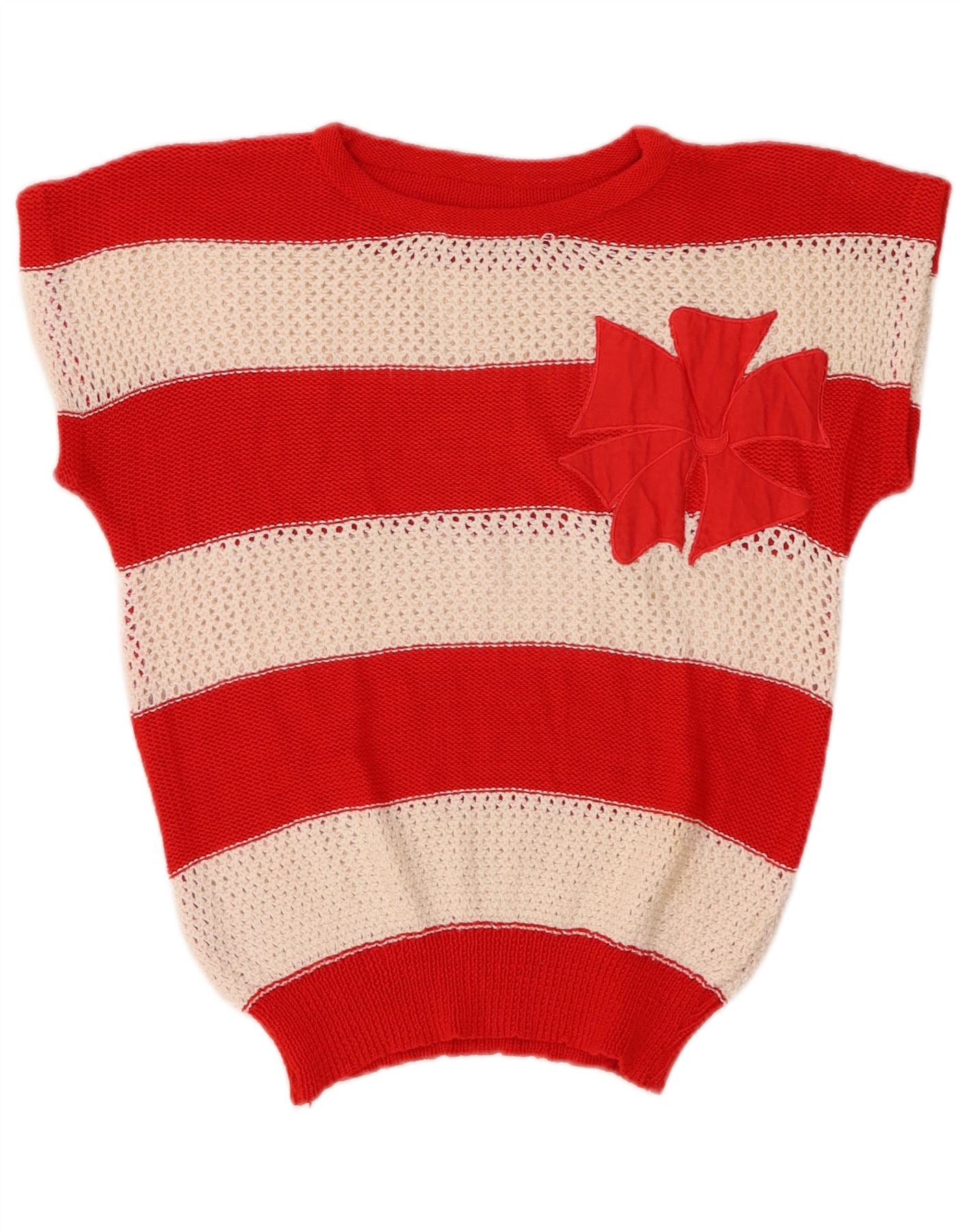VINTAGE Damen Crop Crew Neck Pullover Pullover UK 14 Medium Mehrfarbig