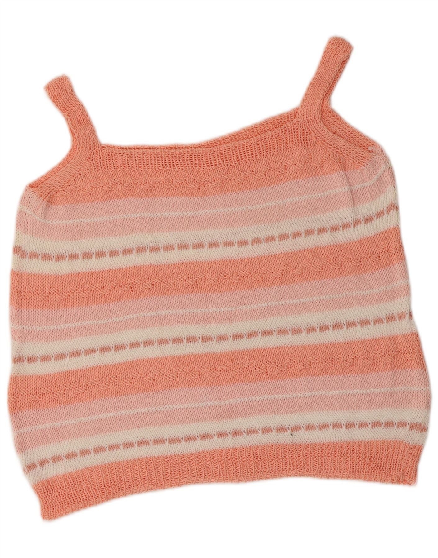 VINTAGE Damen Crop Knit Cami Top UK 12 Mittelrosa gestreift