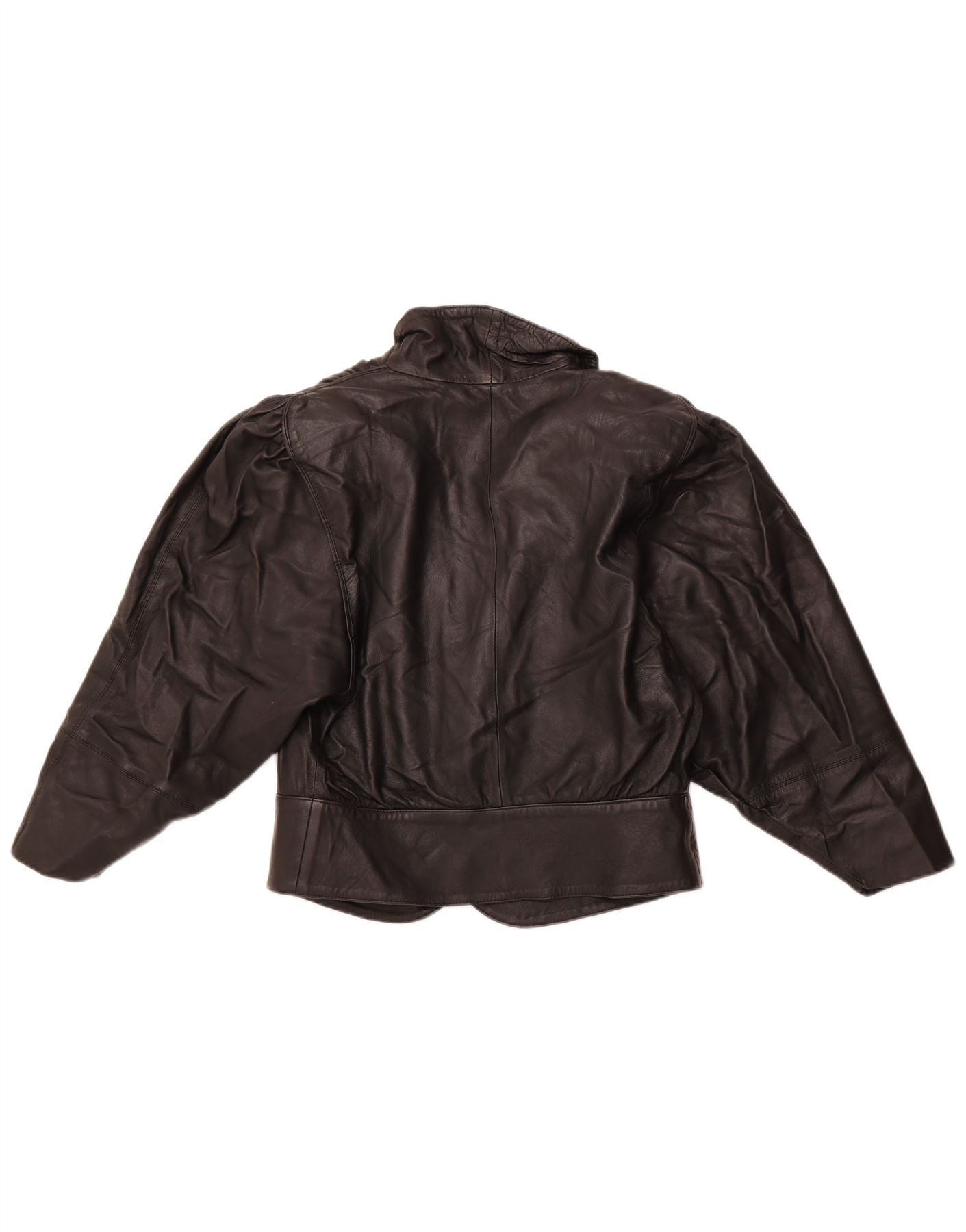 VINTAGE Damen Crop Lederjacke UK 10 Small Schwarz