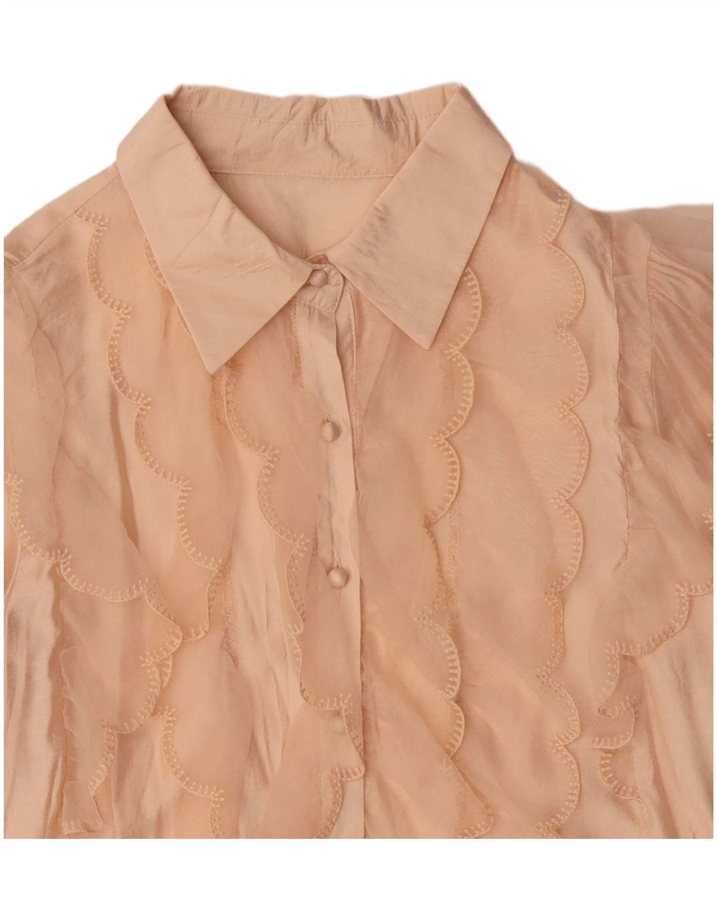 Vintage Damen Crop Rüschen Front Hemdbluse UK 14 Mittelbeige Viskose
