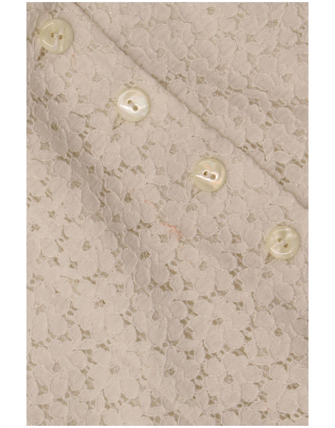 VINTAGE Damen Crop Kurzarm-Hemdbluse IT 46 Large Off White Floral