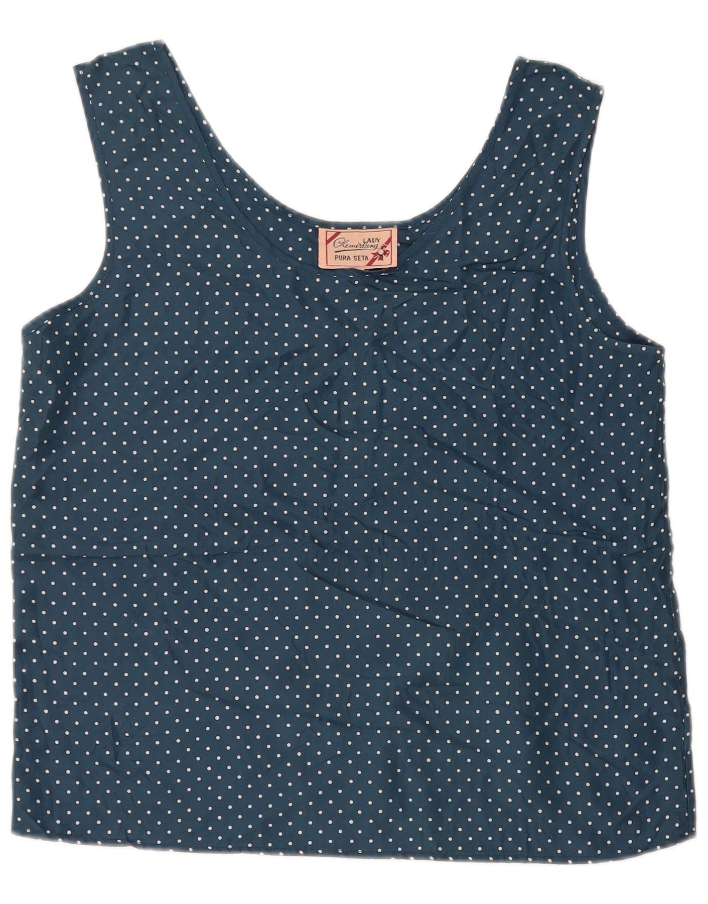 VINTAGE Damen Crop Ärmelloses Blusentop UK 14 Großes Marineblau gepunktet