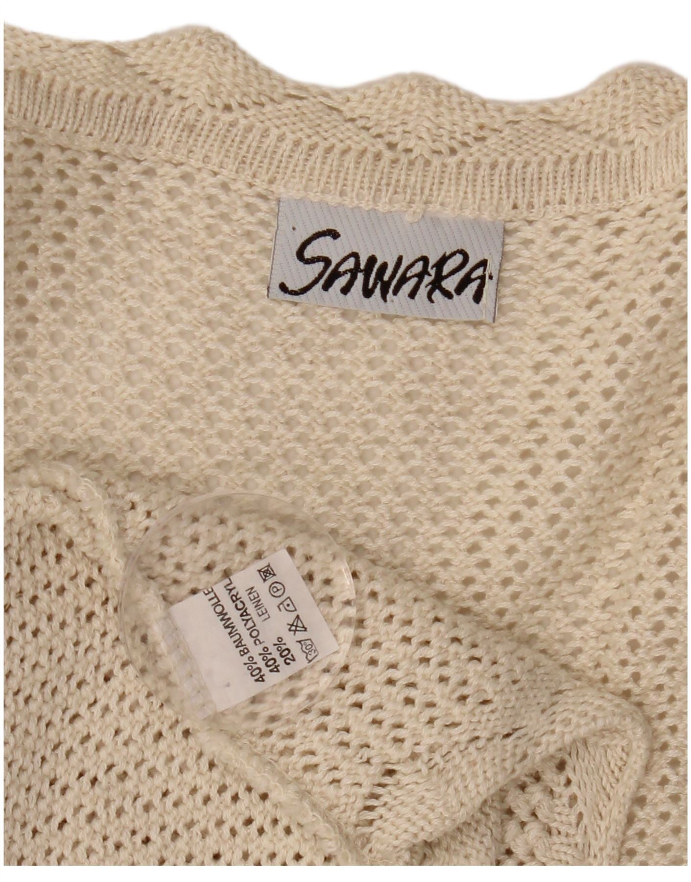 VINTAGE Damen Crop Ärmelloser Häkel-Cardigan-Pullover UK 14 Large Beige