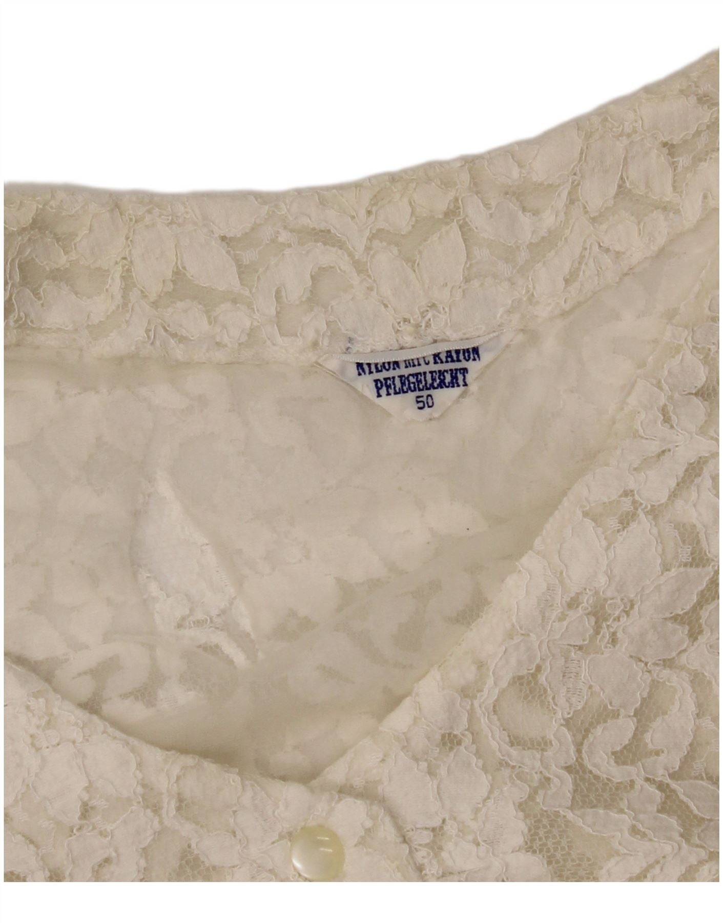 VINTAGE Damen Crop Ärmelloses Hemdbluse IT 50 XL Off White Floral