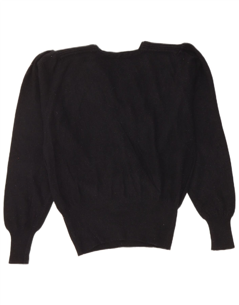 VINTAGE Damen Crop V-Ausschnitt Pullover Pullover UK 14 Mittelschwarze Wolle