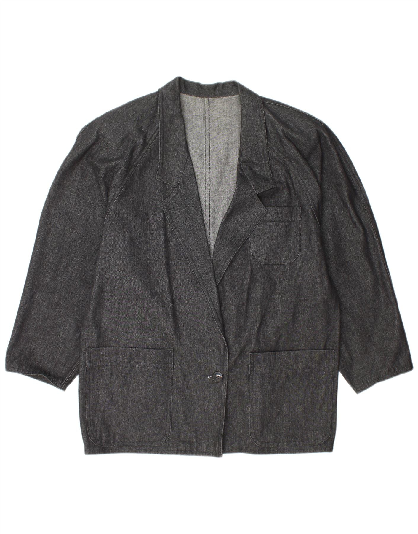 VINTAGE Damen Denim 1 Knopf Blazer Jacke UK 14 Large Grau