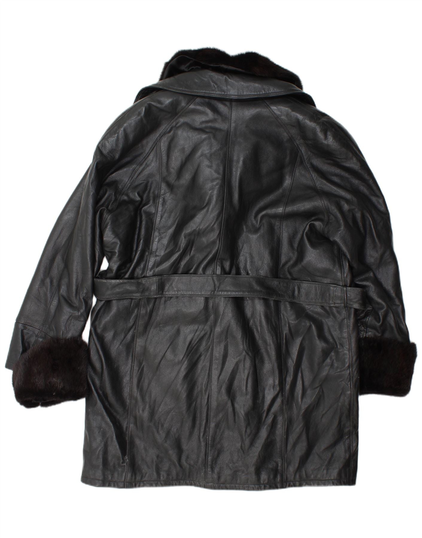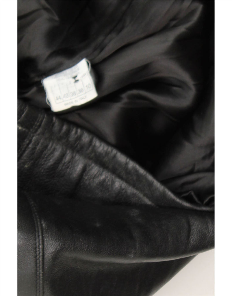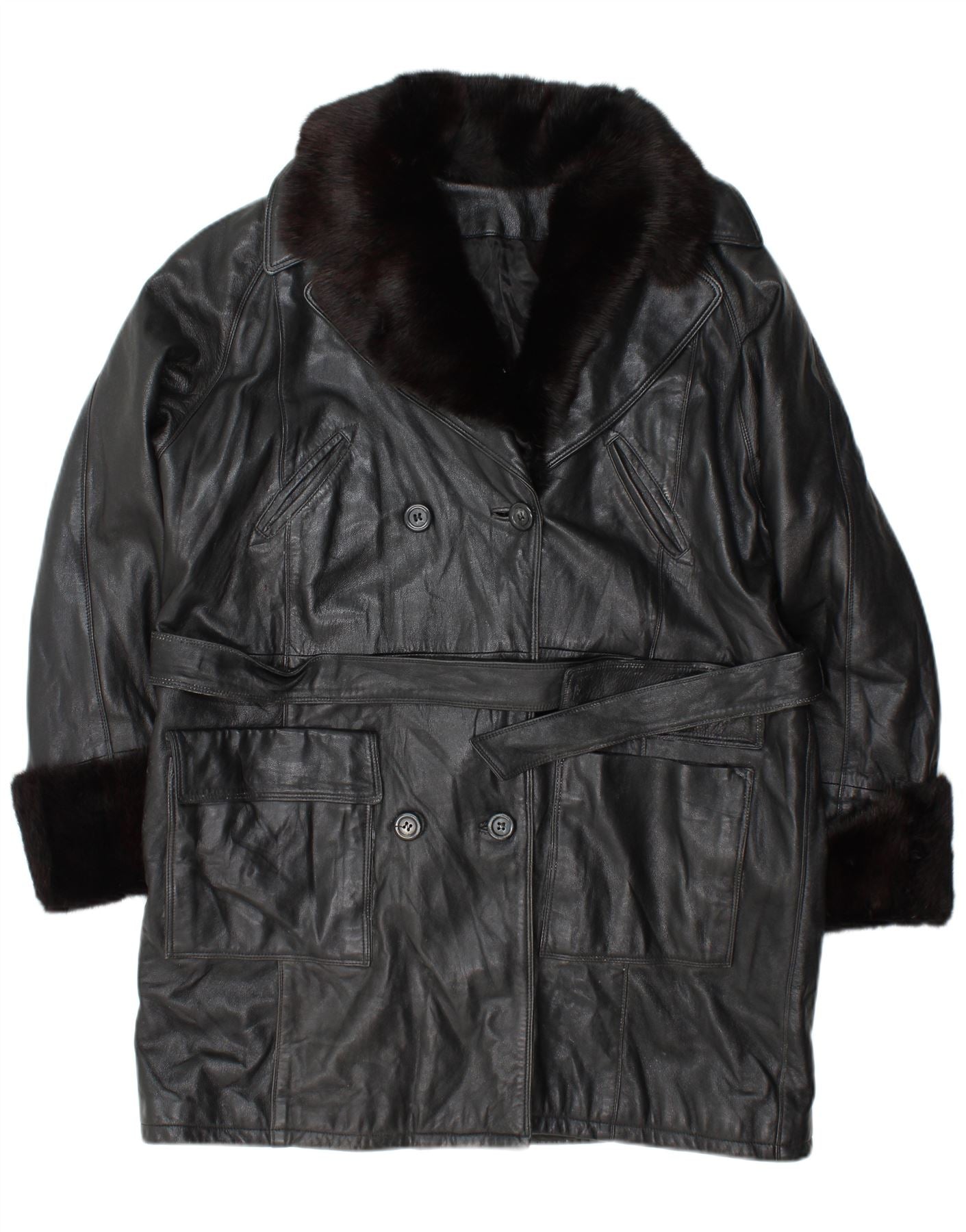 VINTAGE Damen Zweireihiger Ledermantel US 10 Großes schwarzes Leder
