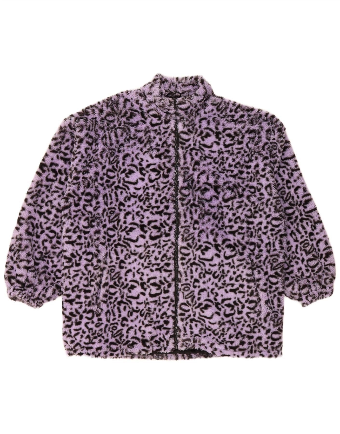 VINTAGE Damen Bomberjacke aus Kunstfell UK 18 XL Lila Animal Print