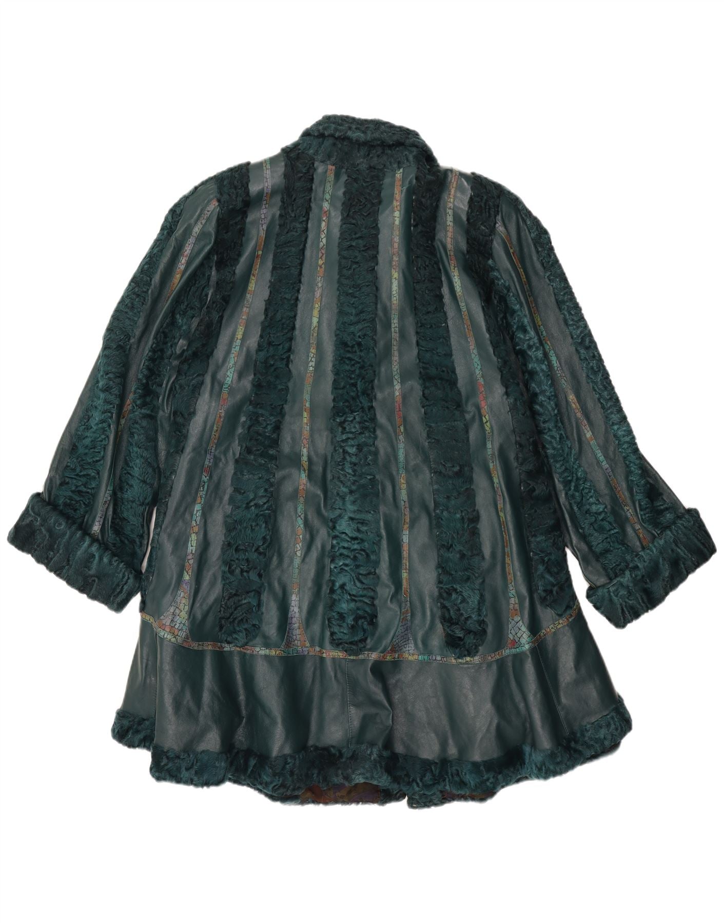 - KI-Beschreibung: Dieser Vintage-Ledermantel für Damen ist ein auffälliges Stück aus tiefgrünem Leder. Es verfügt über einen luxuriösen Pelzbesatz entlang des Kragens, der Manschetten und der vertikalen Einsätze, der für eine reichhaltige Textur sorgt. Der Kragenausschnitt und die langen Ärmel sorgen für eine klassische Silhouette. Dieser schwere Mantel mit entspannter, übergroßer Passform sorgt für Wärme und einen unverwechselbaren Retro-Stil. Es wird mit einem Knopfverschluss geschlossen und ist für mehr Komfort vollständig gefüttert.