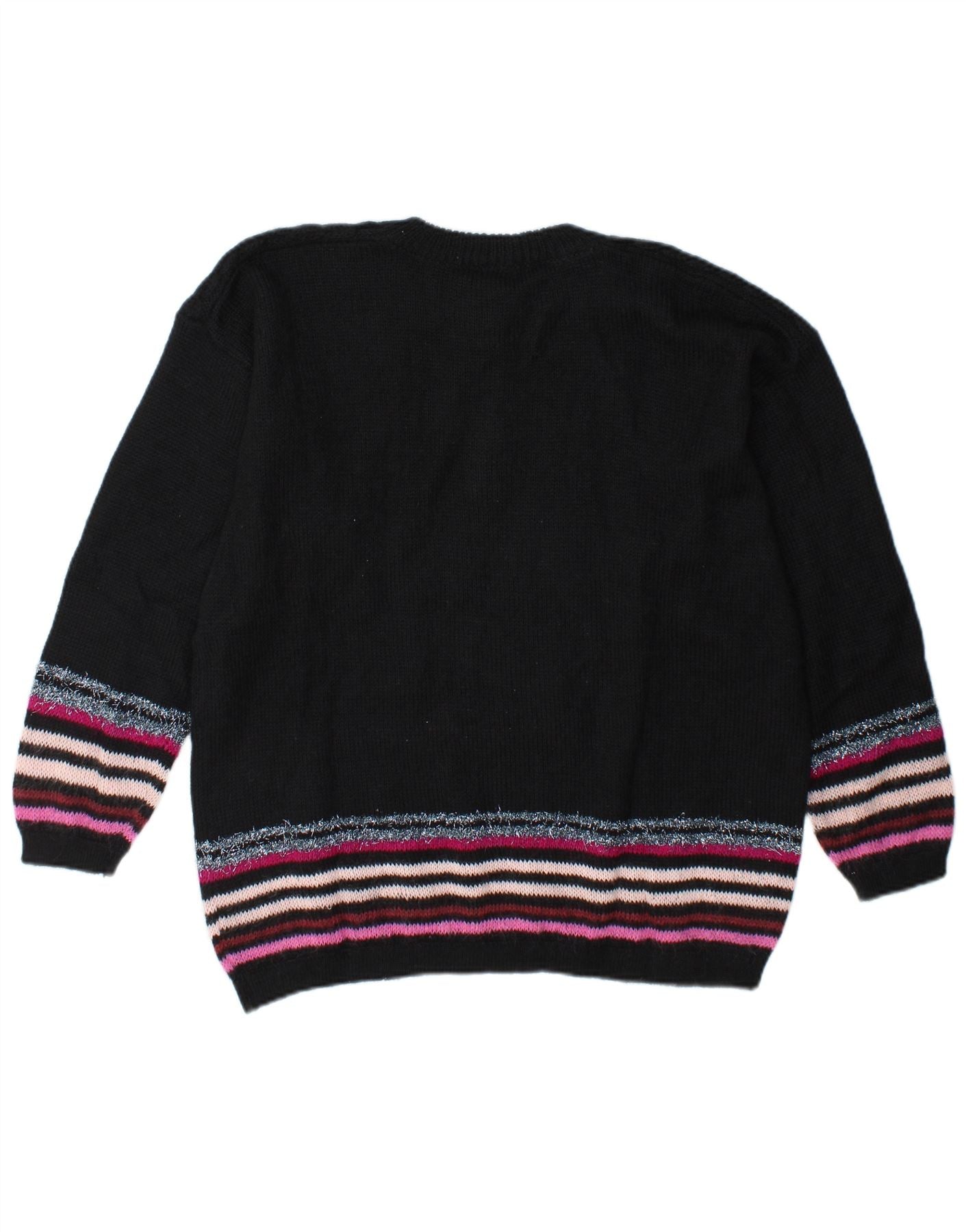 Vintage Damen Pullover mit grafischem Knopfkragen, UK 14, groß, schwarz gestreift