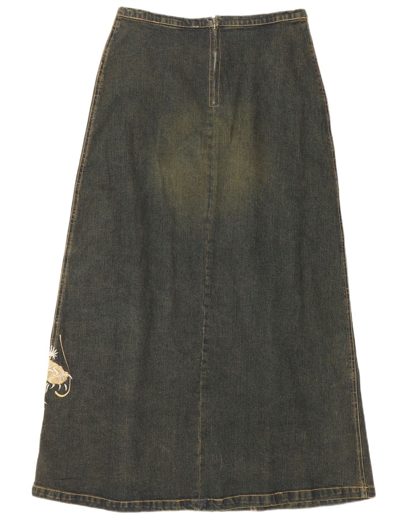 VINTAGE Grafischer Damen-Jeansrock UK 12 Medium W30 Blaue Baumwolle