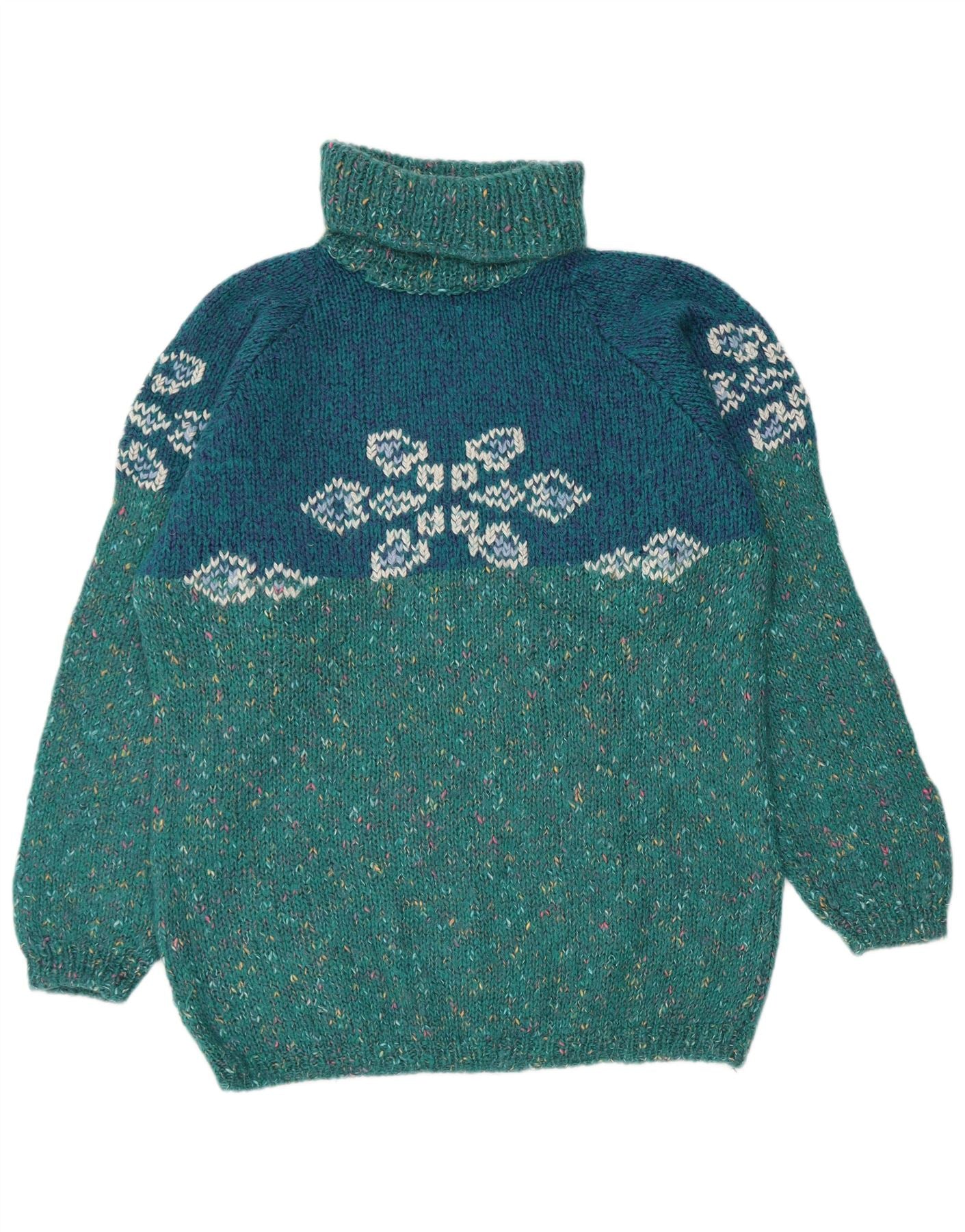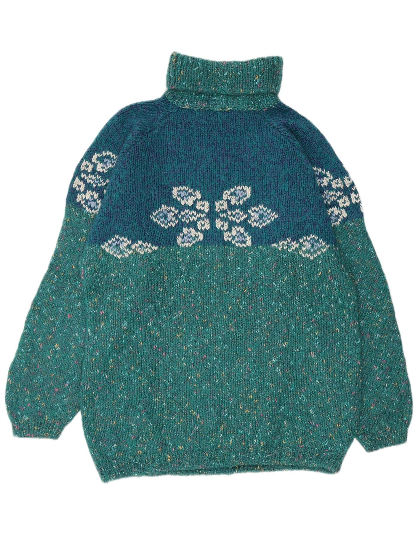 VINTAGE Rollkragenpullover mit Grafik für Damen, Gr. 18, XL, Türkis meliert