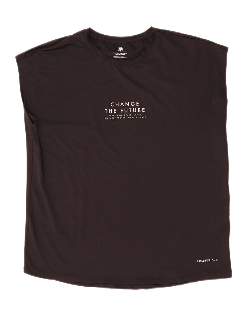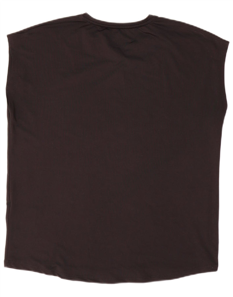 VINTAGE Damen Grafik-T-Shirt-Oberteil UK 14 Mittelschwarzes Polyester