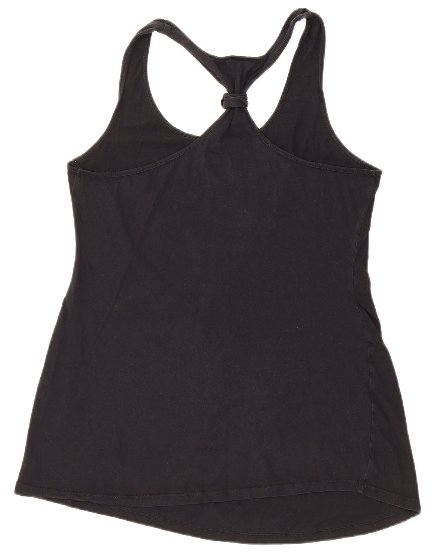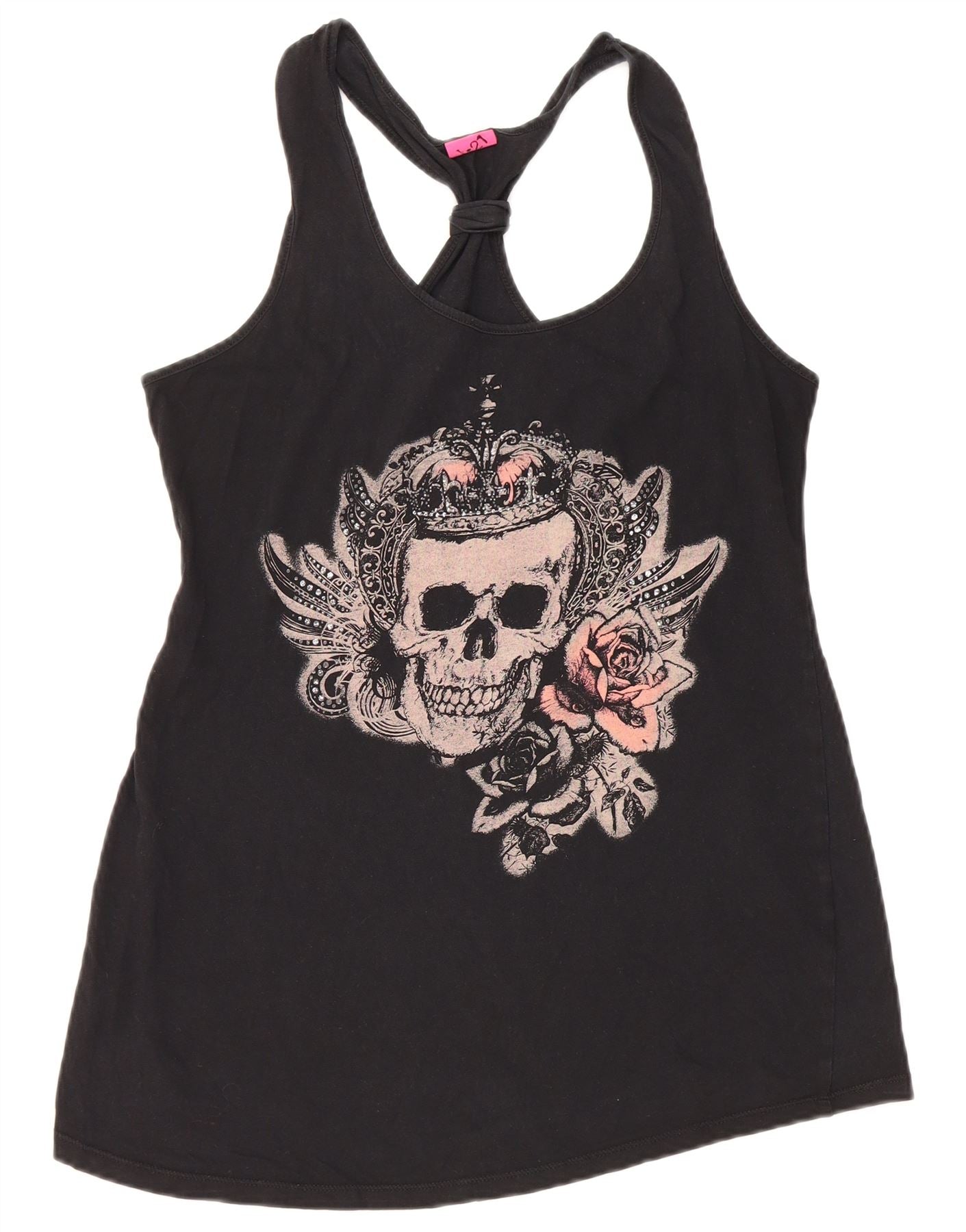 VINTAGE Damen Grafik-Weste-Top UK 12 Mittelschwarze Baumwolle