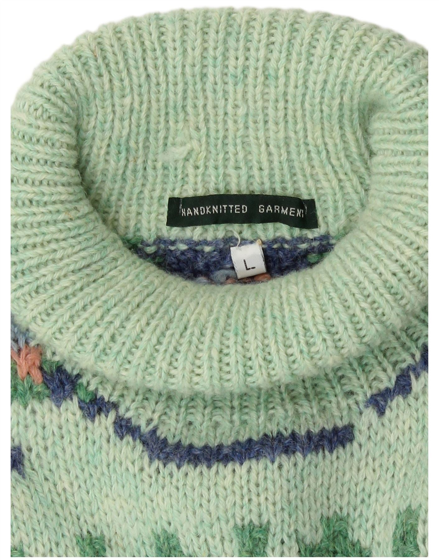 Home > Damen > Depop-Kleidung > Vintage Damen Handgefertigter Rollkragenpullover UK 16 Large Green Aztec