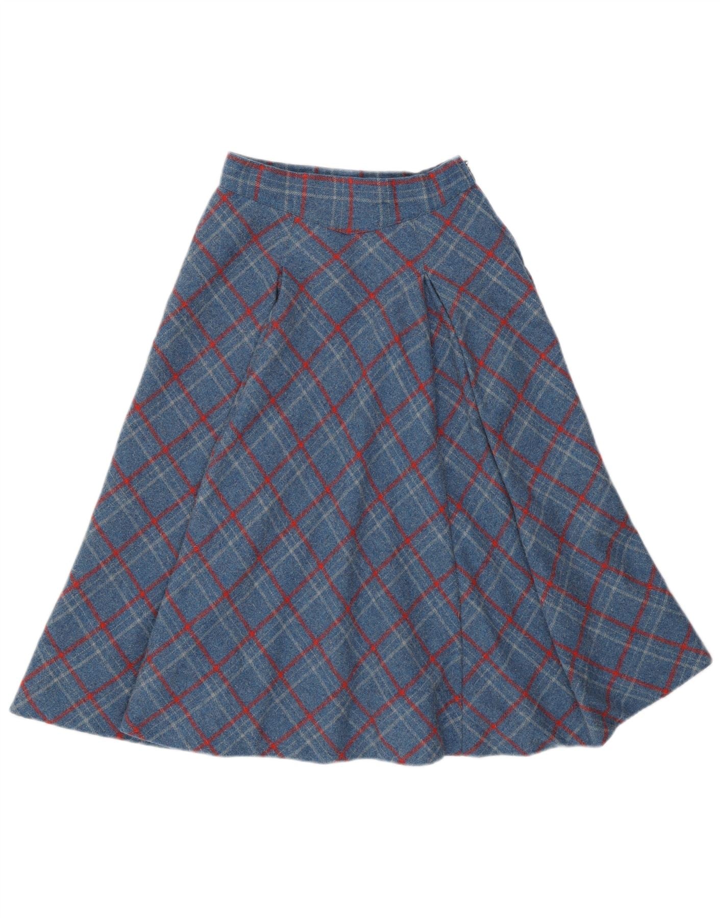 VINTAGE A-Linien-Rock mit hoher Taille für Damen, W24, XS, blau kariert