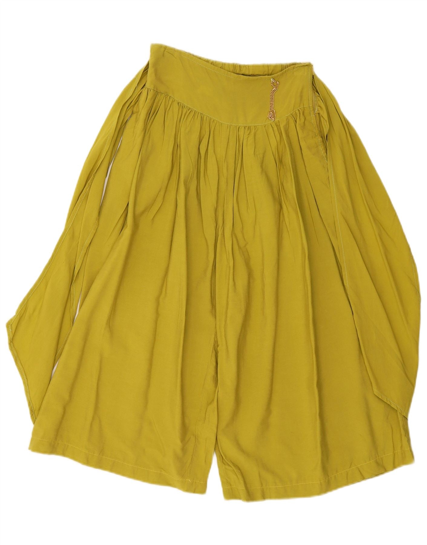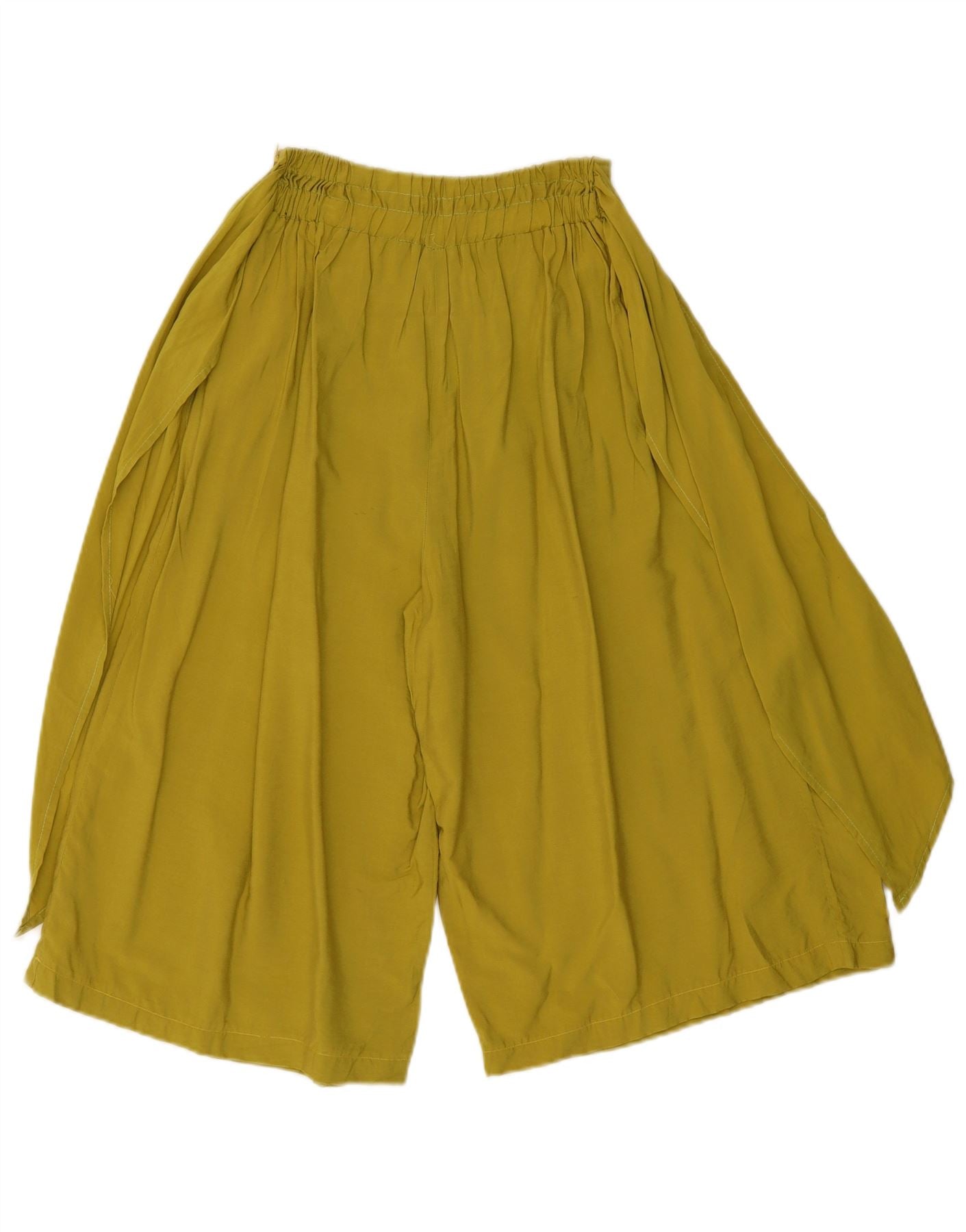 - AI Description: These Vintage womens cropped trousers are crafted from a lightweight khaki woven fabric. They feature a relaxed cullotes fit with wide, flowing legs. The pull on style incorporates an elasticated waist for comfort. This design ensures a relaxed silhouette, perfect for a bohemian aesthetic. The plain finish allows for versatile styling.