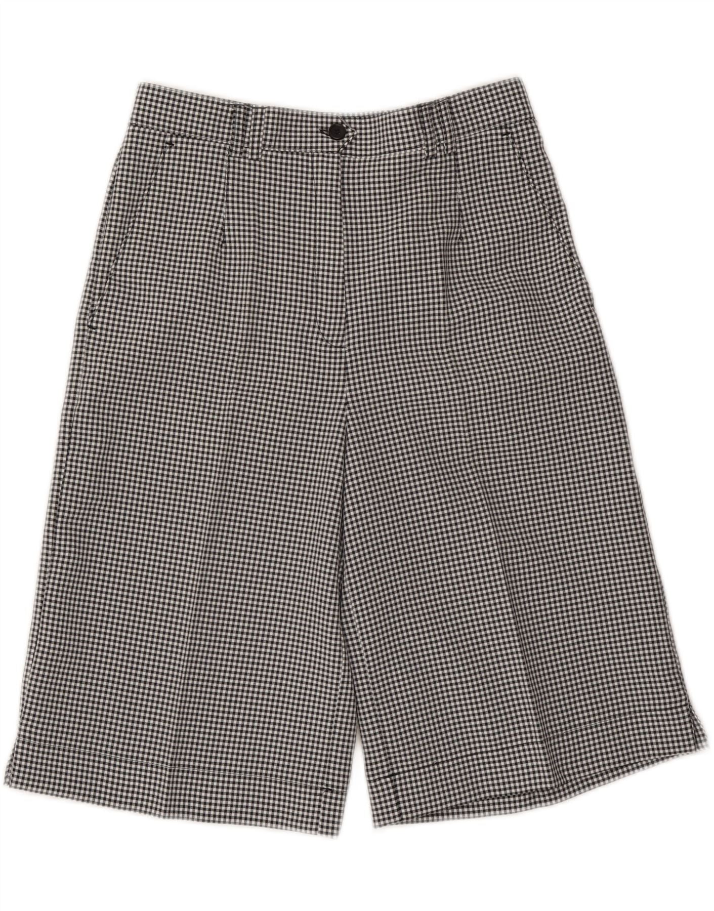 VINTAGE Chino-Shorts mit hoher Taille für Damen, UK 10, Größe S, W27, Schwarz, Gingham