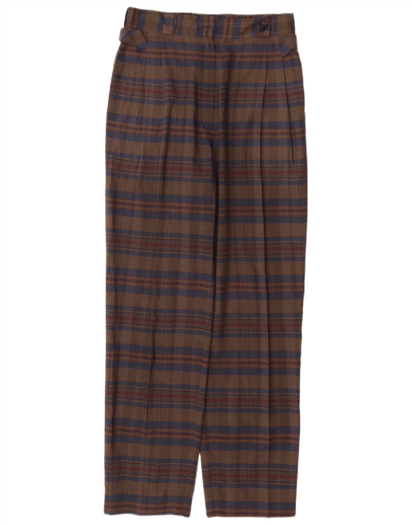 VINTAGE Damen-Chinohose mit hoher Taille, Größe 44, mittelgroß, W26, L29, braun kariert