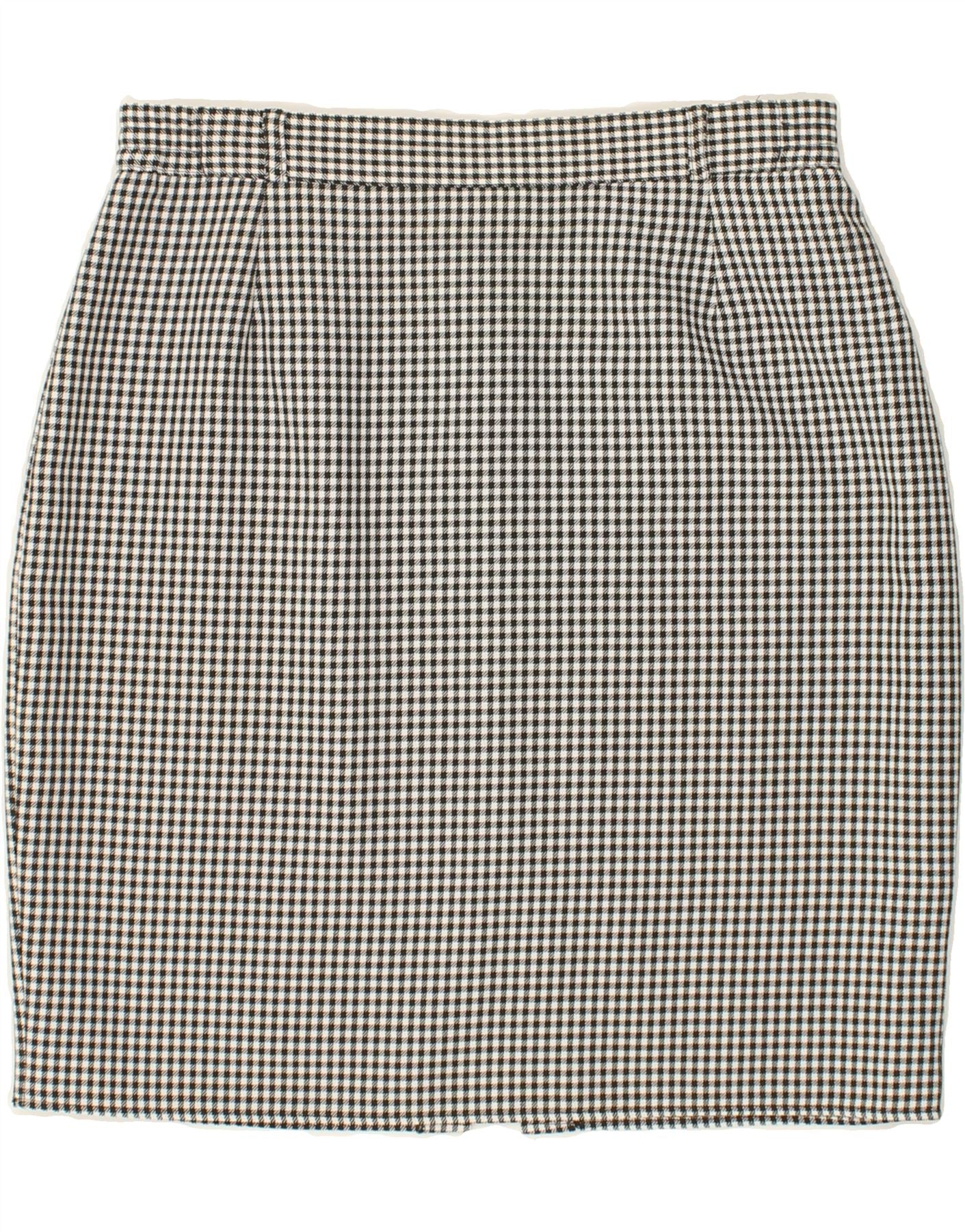 VINTAGE Womens High Waist Pencil Skirt UK 18 XL W30 Grey Gingham Polyester